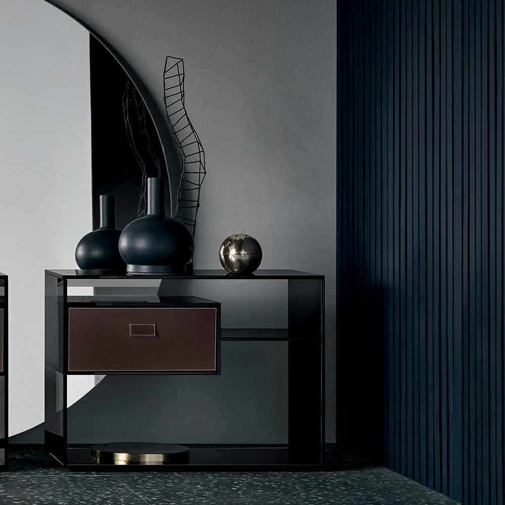 OBS: Lådorna i olika ytor och den övre hyllan för lådan i syraetsad, spegel eller lackerat glas finns på begäran. För en kostnadsfri offert, tveka inte att kontakta oss genom att fylla i formuläret "Begär information".