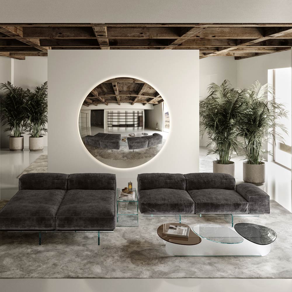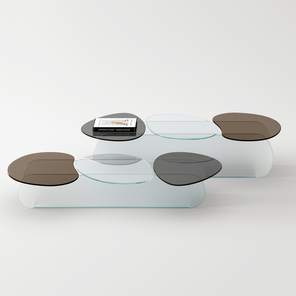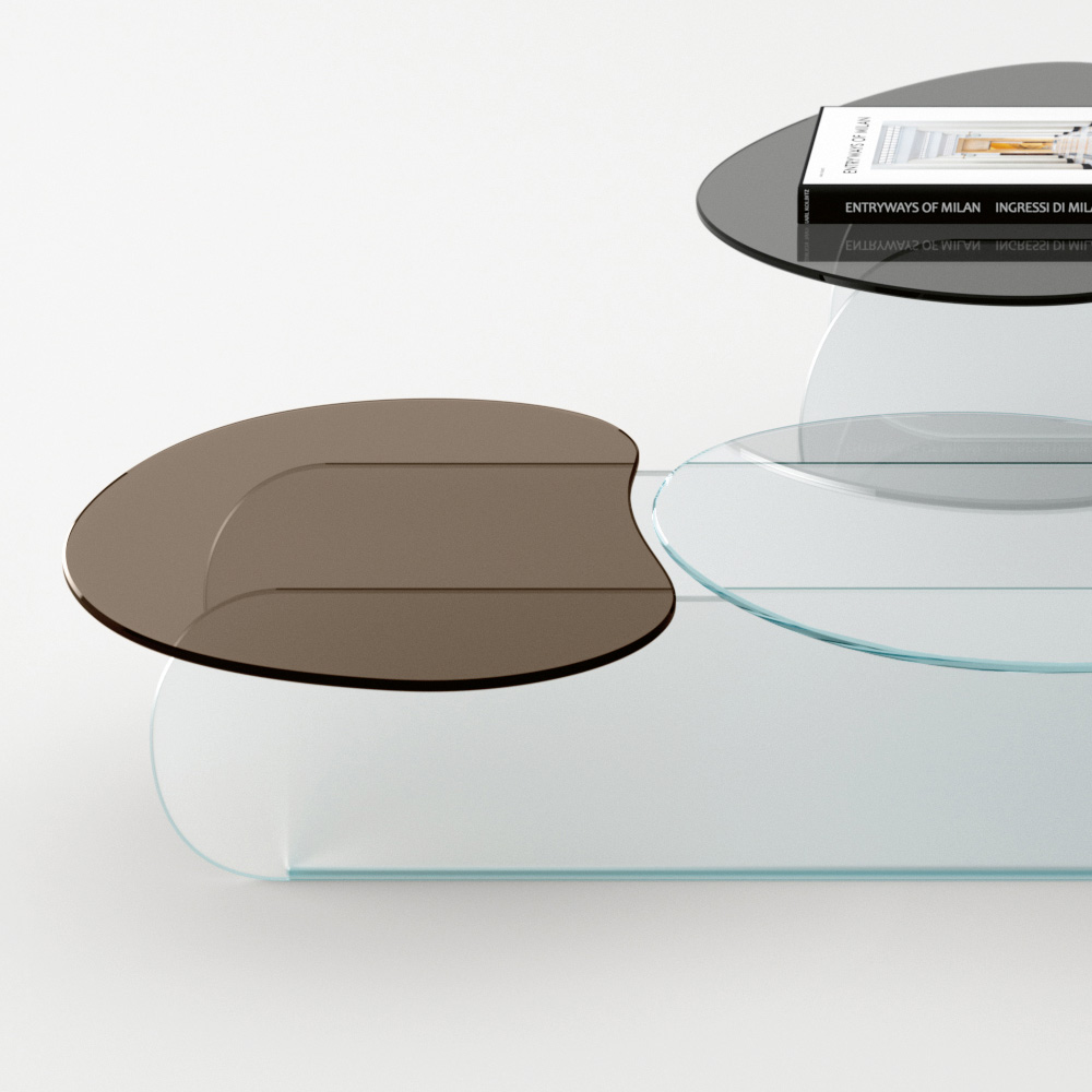 Den innovativa sammansättningen av transparenta och färgade ytor ökar inte bara uppfattningen av rymden, utan erbjuder också det praktiska i daglig användning, perfekt för dem som letar efter en design som är lika mycket ett samtalscentrum som det är av nytta. Elegant och multifunktionellt, detta bord är ett distinkt val för dem som uppskattar design som talar modernitetens och funktionalitetens språk.