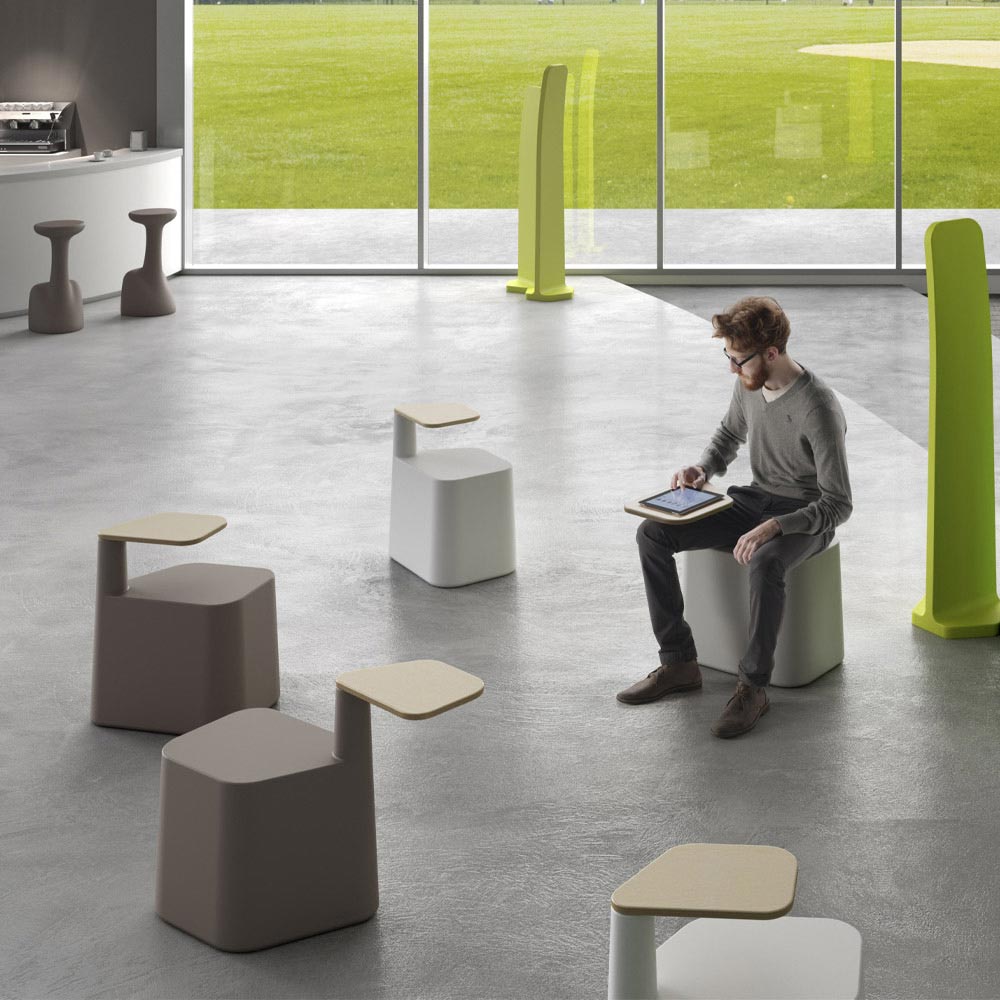 funktionalitet och praktiskt att erbjuda en intelligent bordsskiva idealisk för korta stopp i livliga offentliga miljöer som barer, relaxavdelningar och utrymmen som studierum, mötesplatser, bibliotek. Dess estetik präglas av