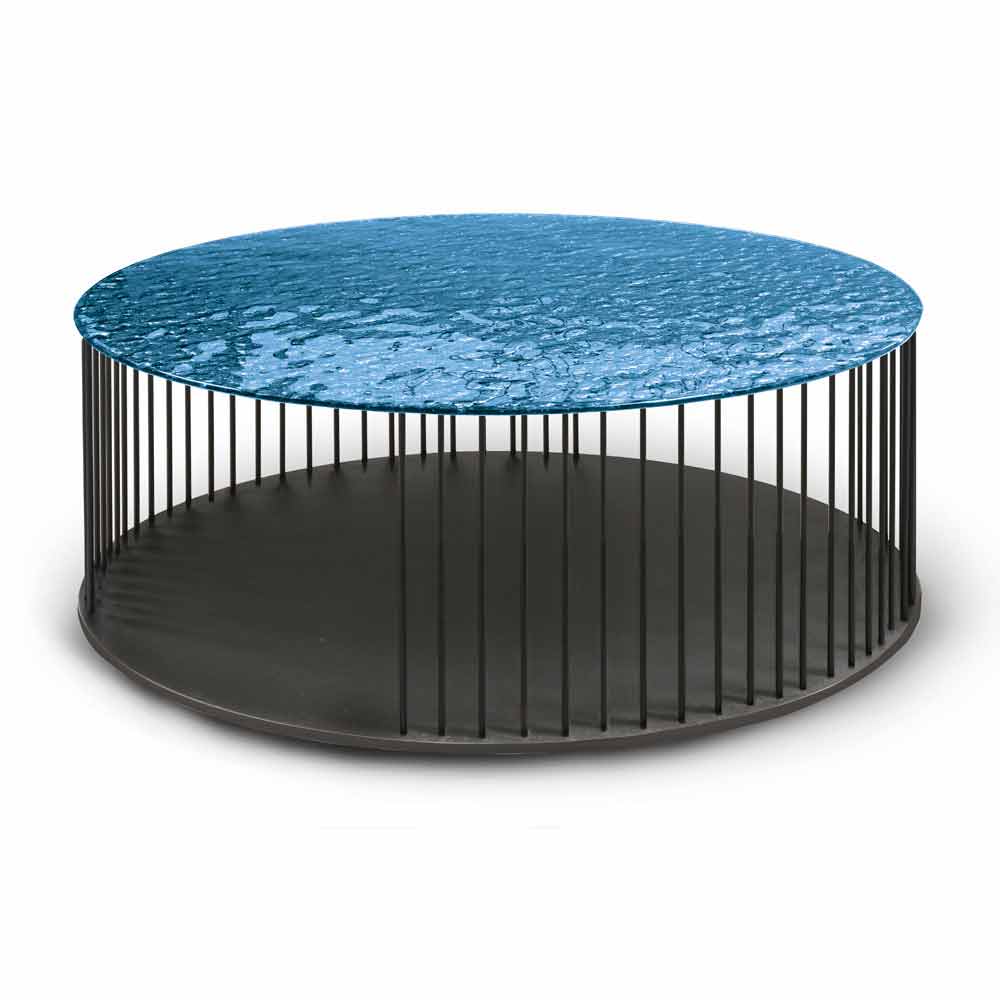 Soffbord i smidd kristall och svart metall Tillverkat i Italien.