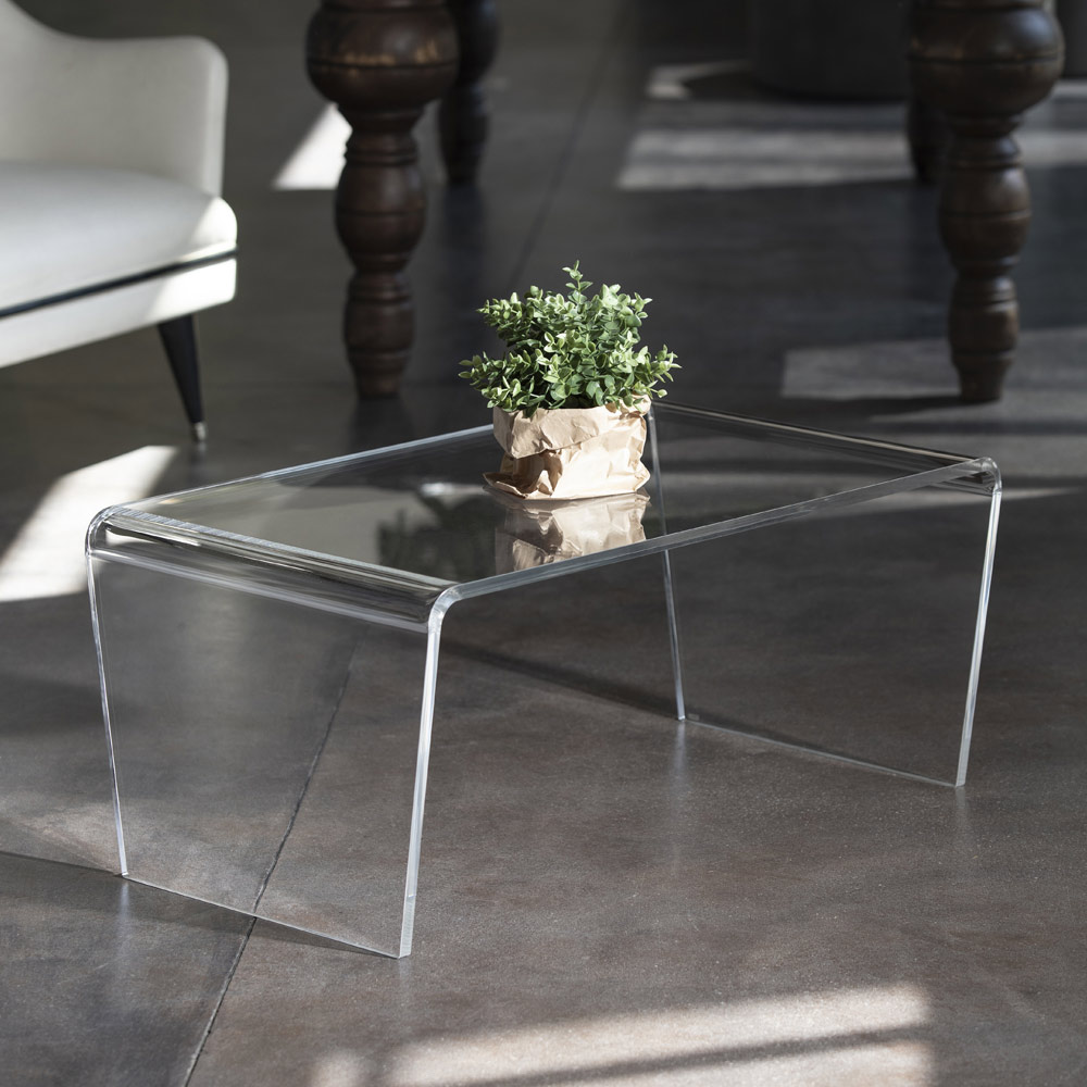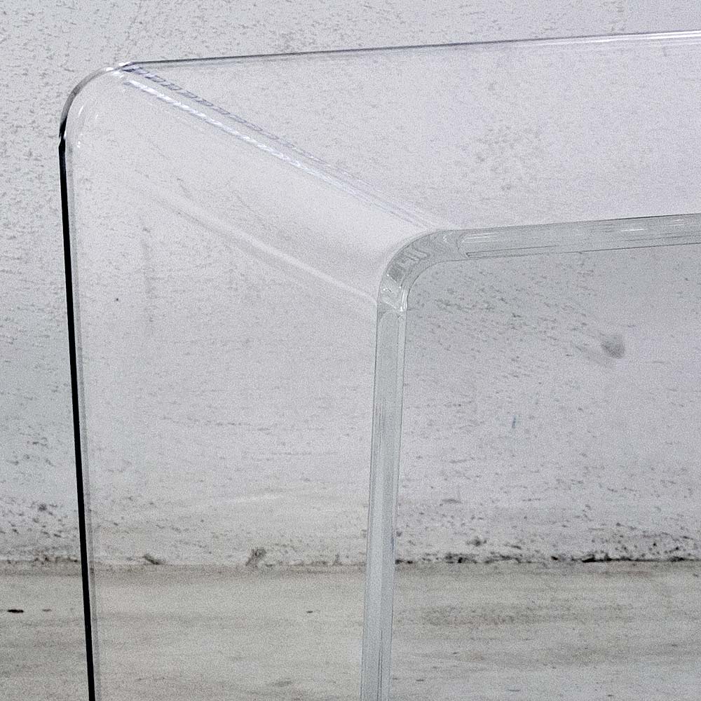 Detta soffbord har en struktur helt och hållet gjord av transparent akrylkristall laserskuren och vikt för hand , för en design med väsentliga och minimala linjer.