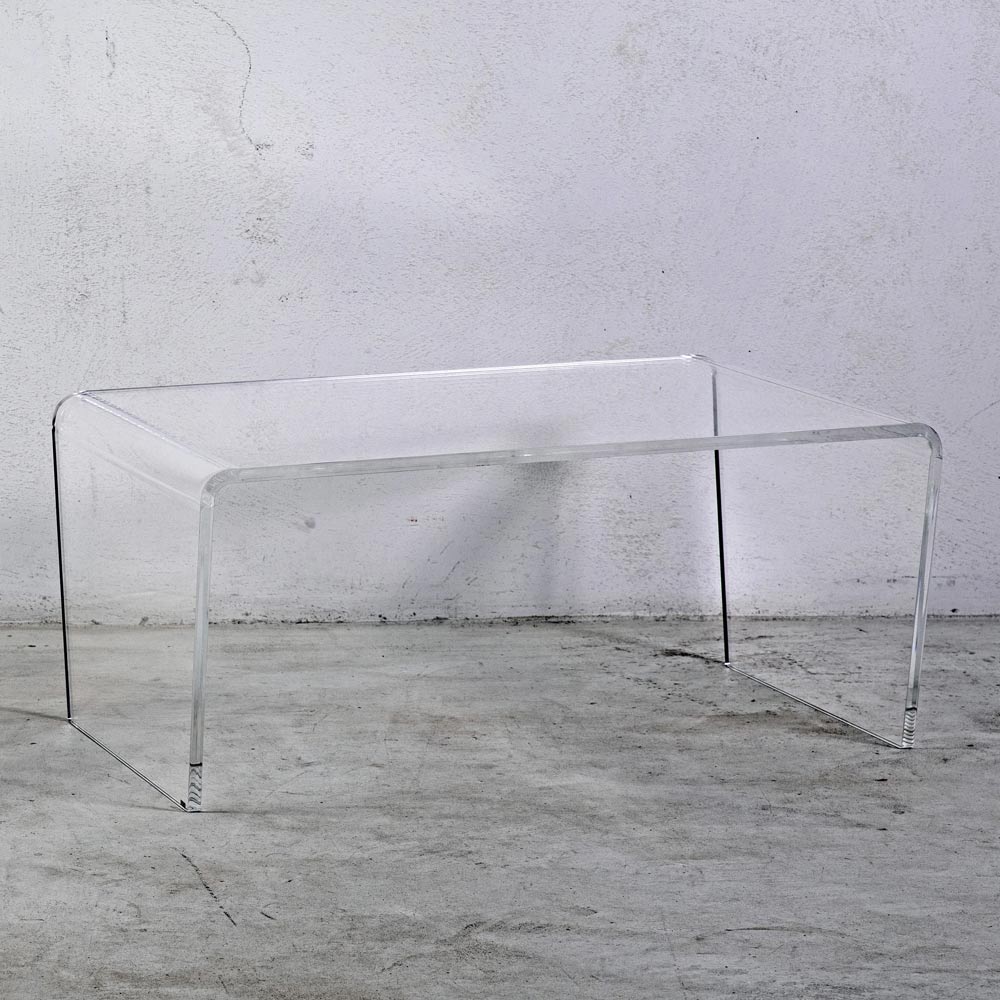 Rektangulärt soffbord i handvikt transparent akrylkristall tillverkat i Italien.