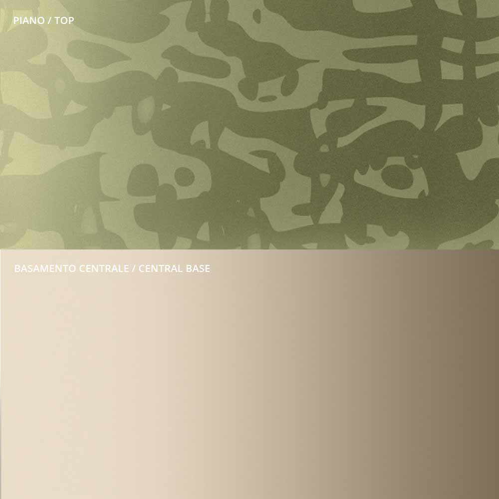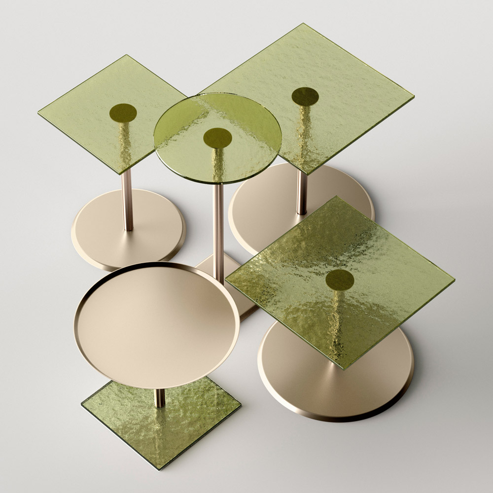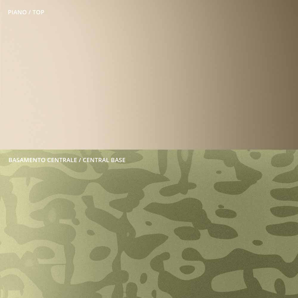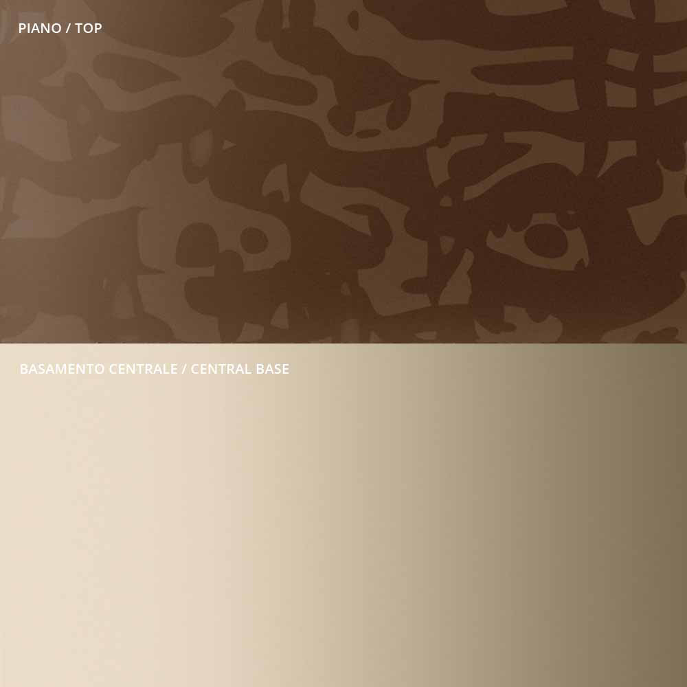 originaliteten och elegansen i formerna på toppen och basen som förstärker detaljerna i den centrala metallskaftet, omsorgsfullt svarvade i tjocklek och avslutade på ytan. Soffbordet, ensamt eller i grupp, anpassar sig för att inreda alla rum i hemmet och dra ihop sig med en
