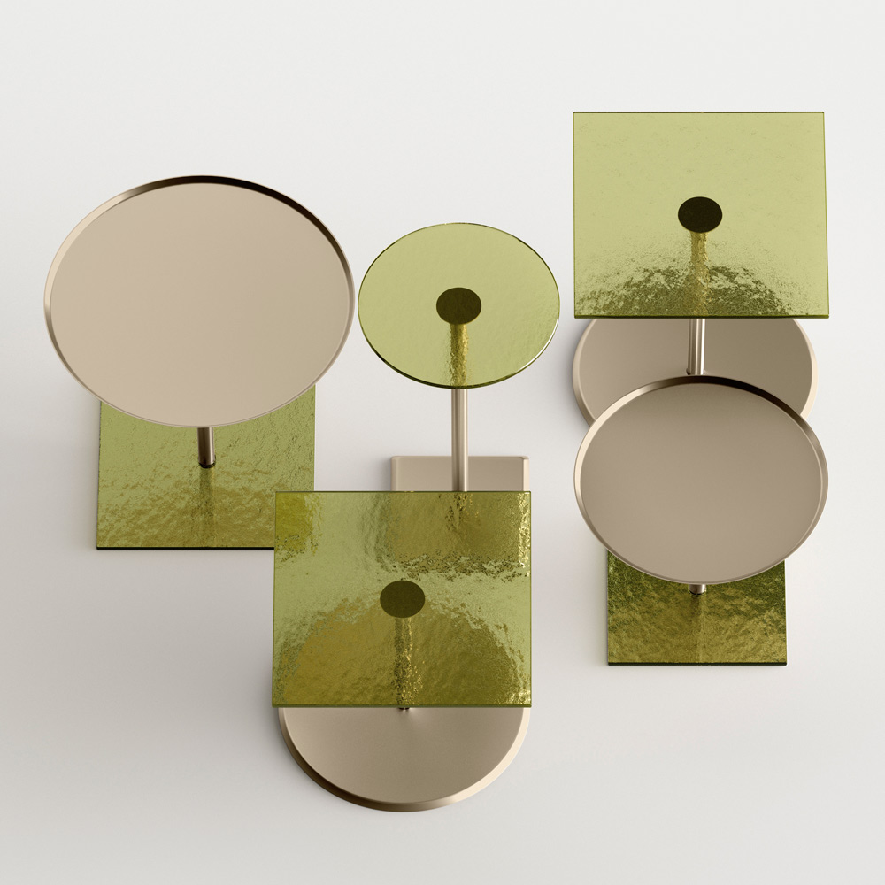 originaliteten och elegansen i formerna på toppen och basen som förstärker detaljerna i den centrala metallskaftet, omsorgsfullt svarvade i tjocklek och avslutade på ytan. Soffbordet, ensamt eller i grupp, anpassar sig för att inreda alla rum i hemmet och dra ihop sig med en