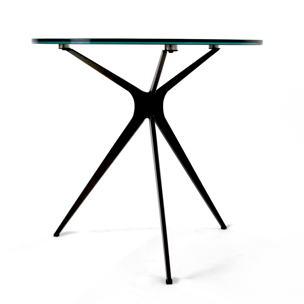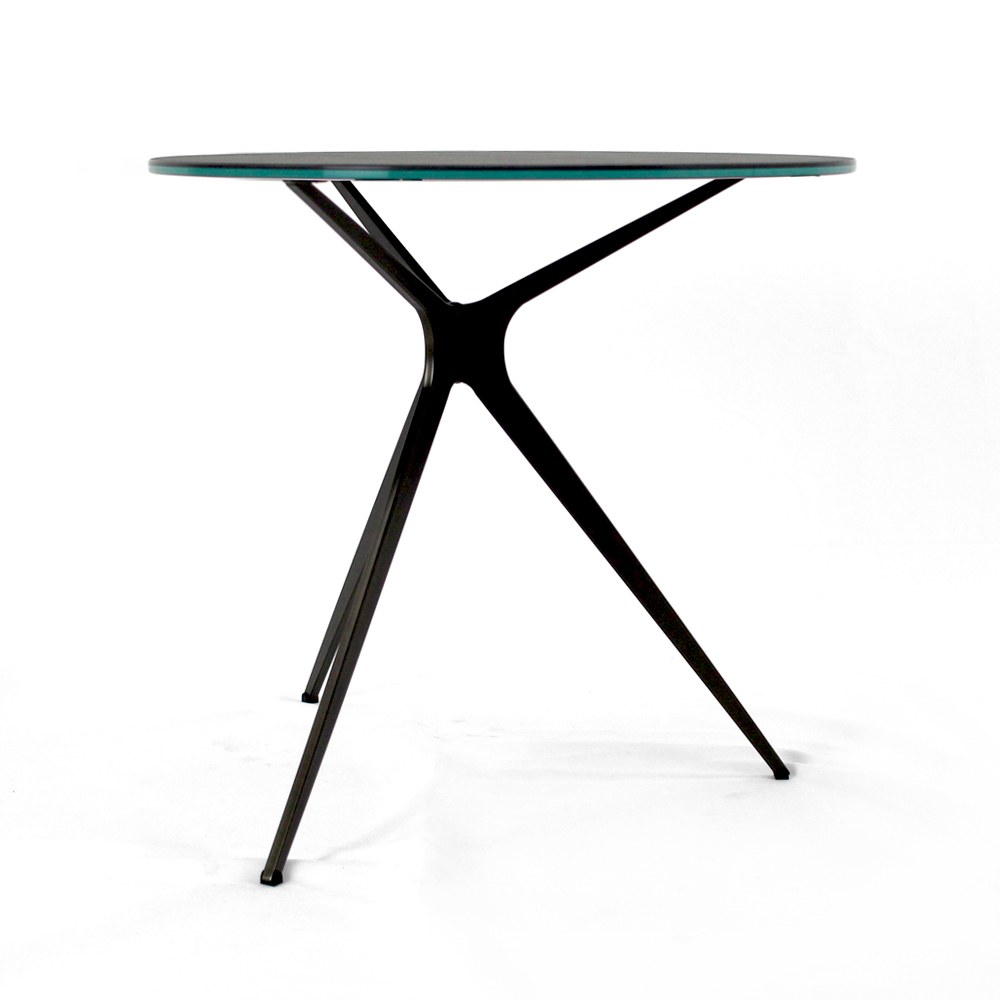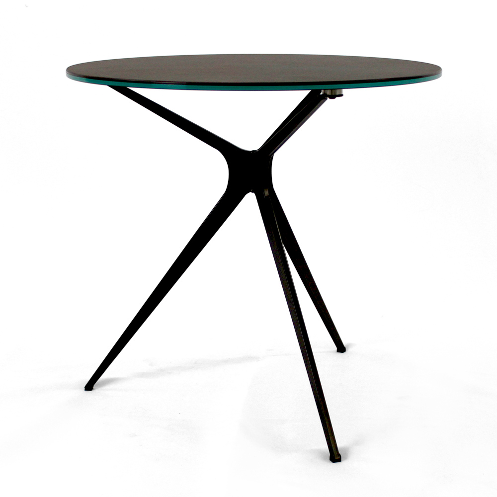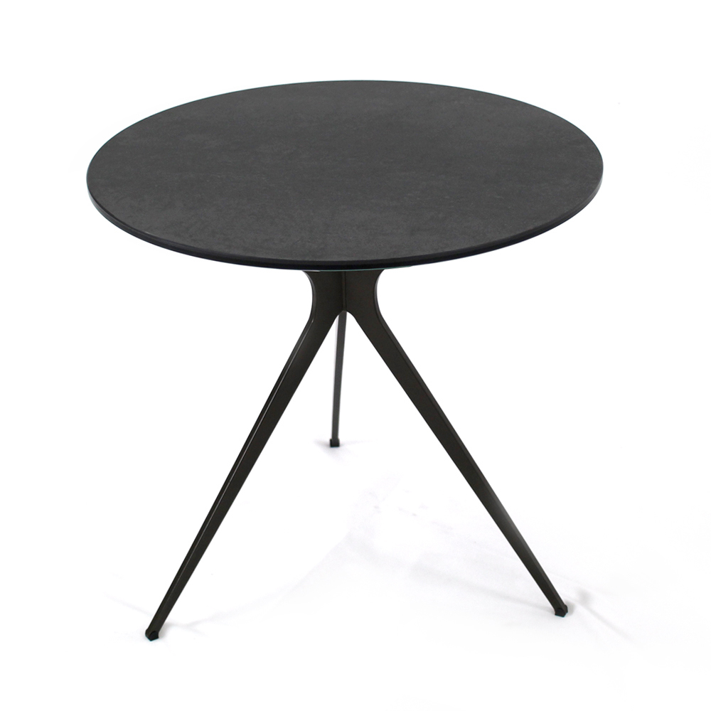 Runt soffbord med lackerad stålfot och topp i porslin i stengods.