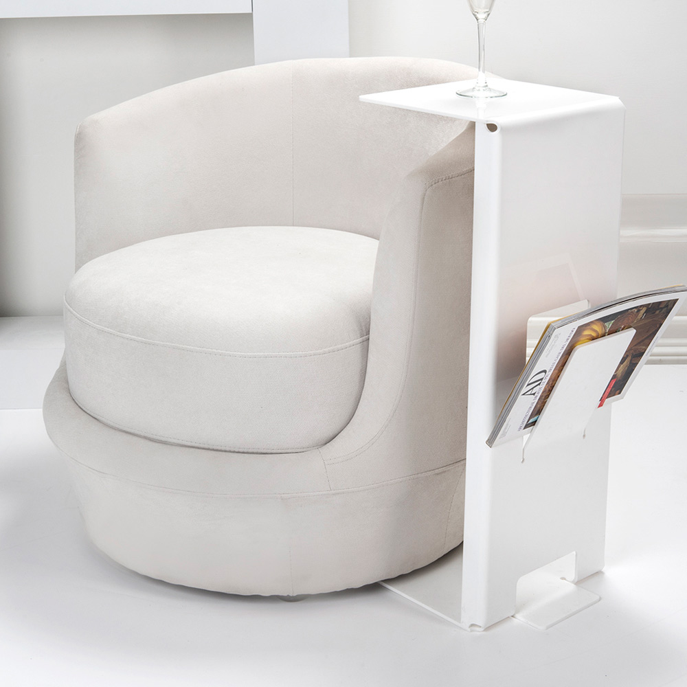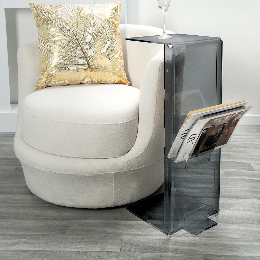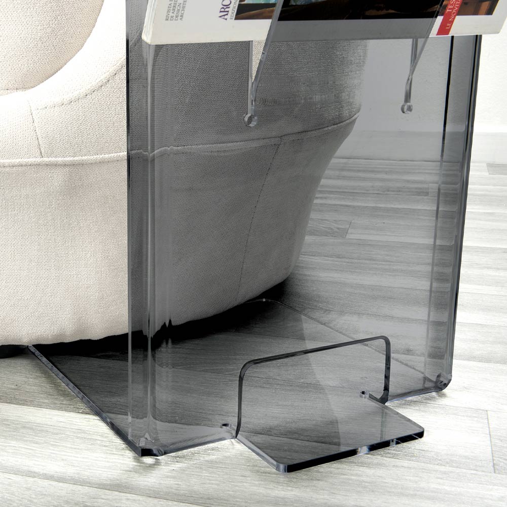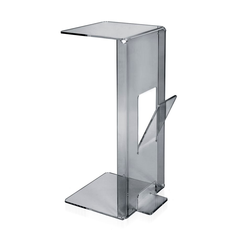 Soffbordet är ett funktionellt konstverk som kombinerar elegans, funktionalitet och hållbarhet i en innovativ design. Tillverkad av högkvalitativt klart plexiglas, ger denna pjäs en touch av modern klass till alla miljöer, vilket ger intrycket av ett mer öppet och ljust utrymme.
