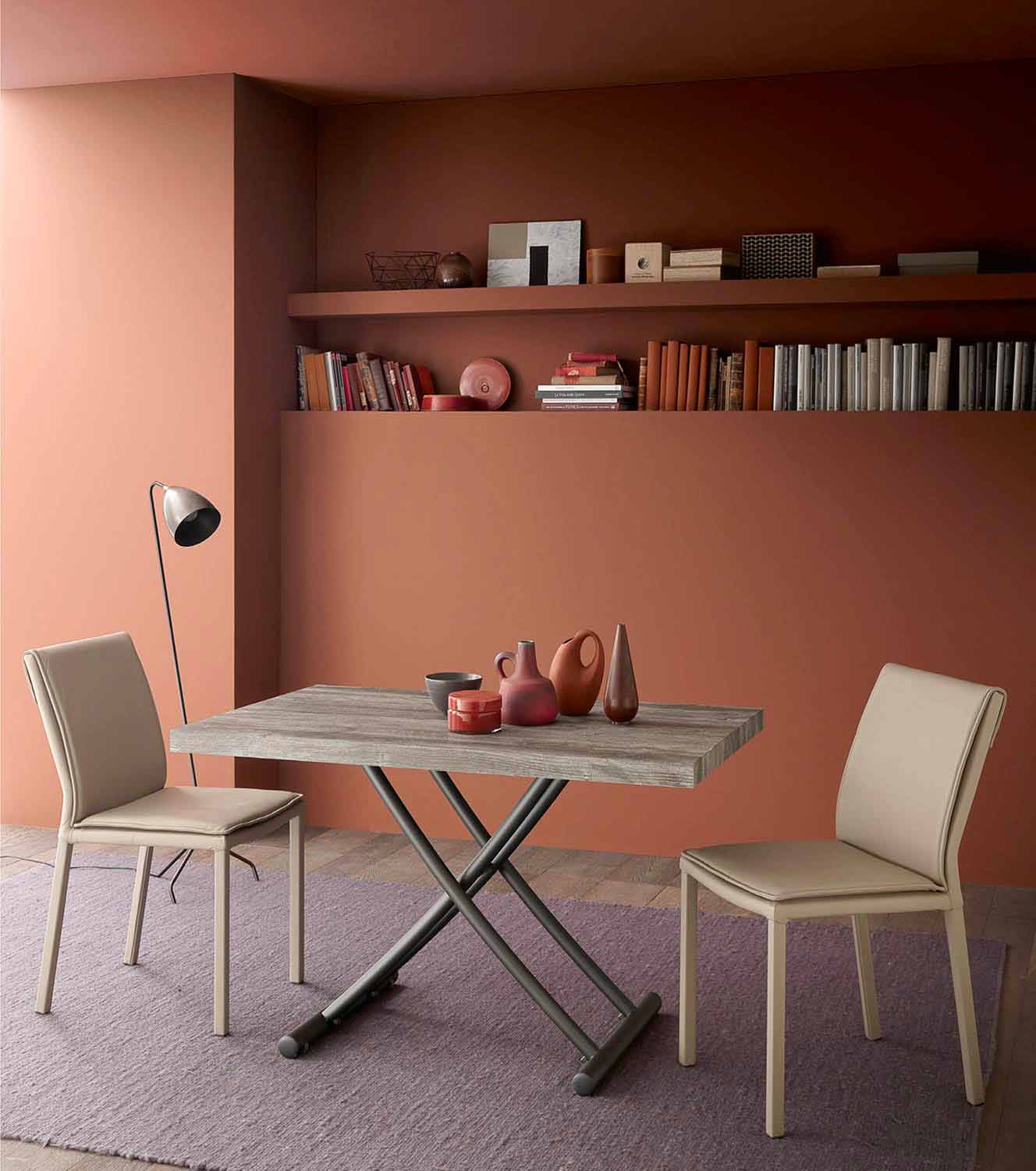 utrymmesbesparande bord . Tack vare dess graciösa och eleganta mått kan den när den är stängd förvaras under soffan eller under sängen.