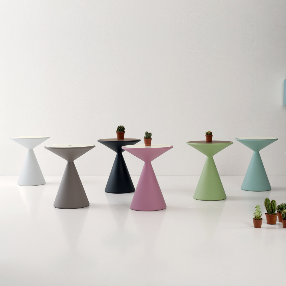 Runt soffbord i färgad polyeten med invändig behållare tillverkad i Italien.