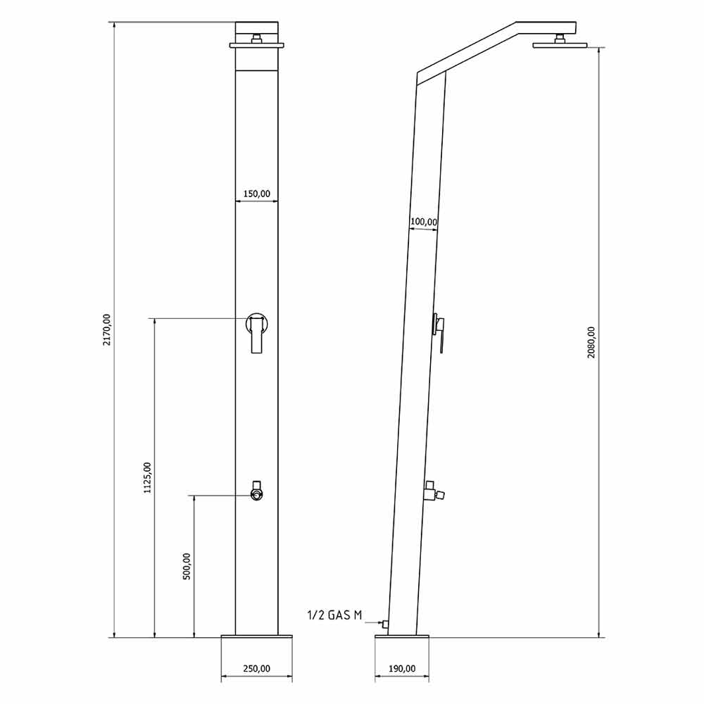 Solcellsdusch för utomhusbruk tillverkad i Italien med pelare i