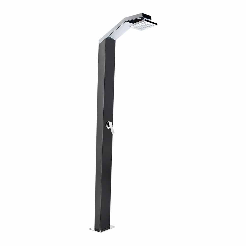 Solcellsdriven trädgårdsdusch i svartmålat rostfritt stål, tillverkad i Italien.