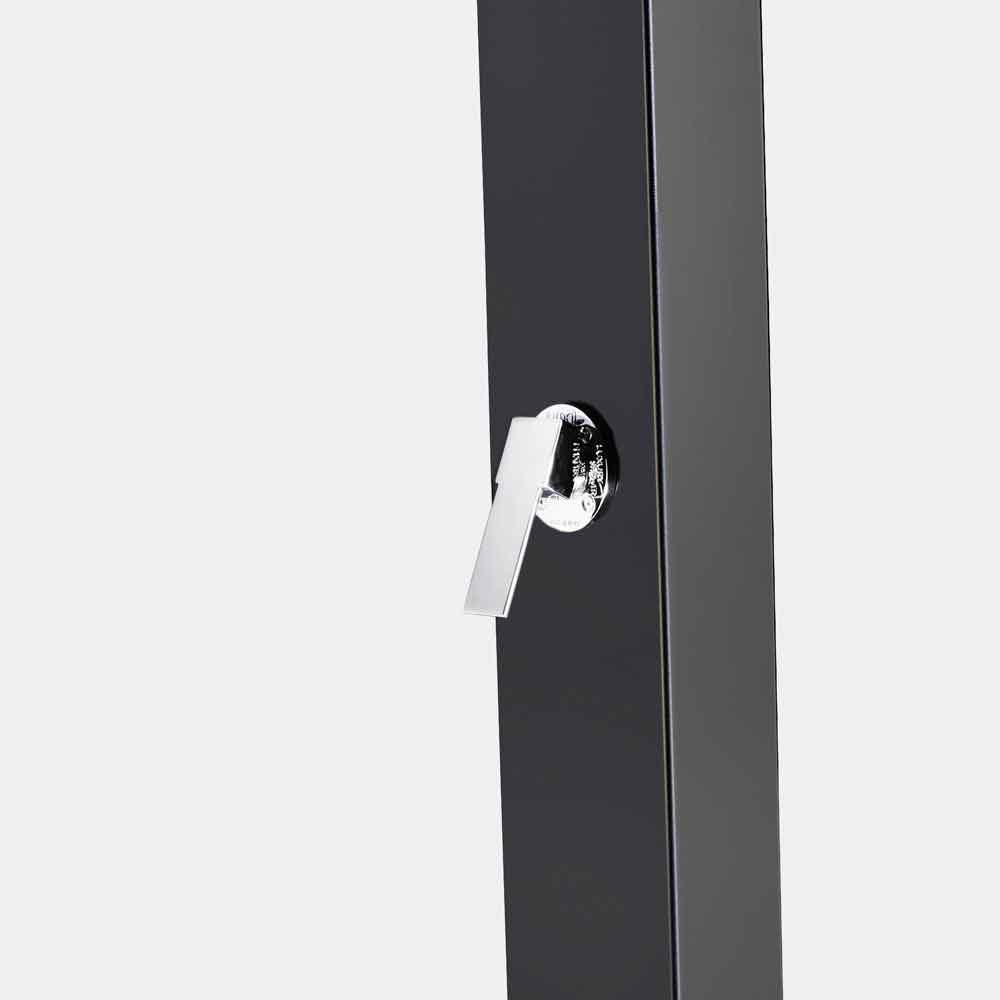 Svartmålad solcellsdusch i stål med vattenfallsstråle, tillverkad i Italien.