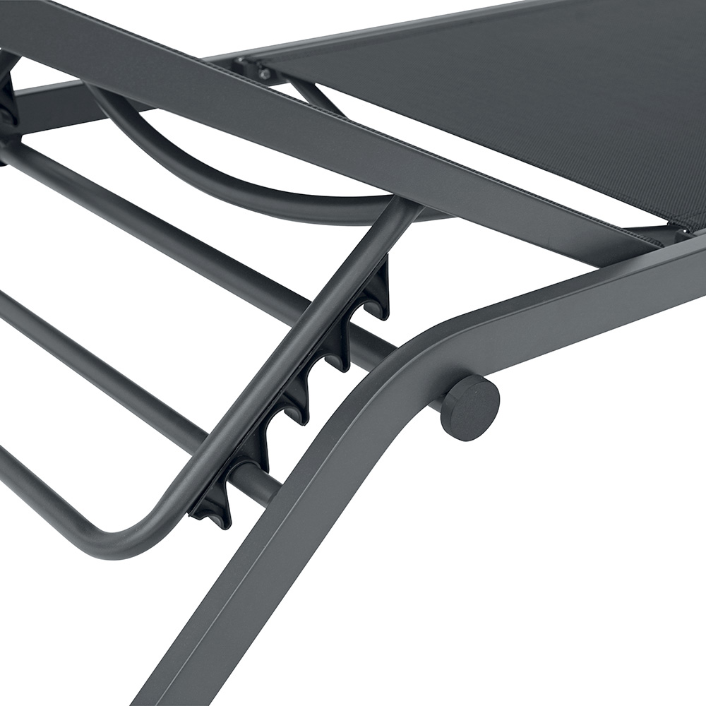 Denna solstol kombinerar modern design, komfort och hållbarhet och erbjuder den perfekta lösningen för att njuta av utomhusmiljöer till fullo. Tillverkad av ett 40 x 20 x 1,6 mm aluminiumrör är den både robust och lätt, vilket gör den enkel att flytta och perfekt för vardagsbruk i trädgården, vid poolen eller på terrassen.