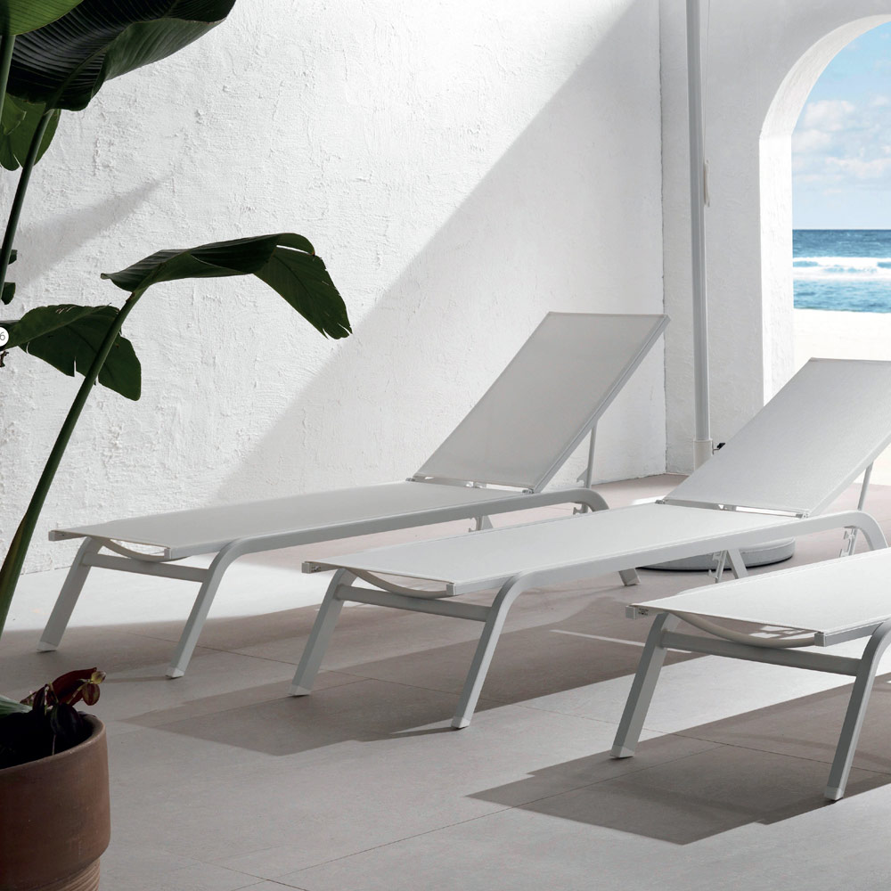 Denna solstol hjälper till att berika den omgivande inredningen genom sin delikata och moderna estetik erbjuder en bekväm sits tack vare det lutande ryggstödet som låter dig justera önskad position.