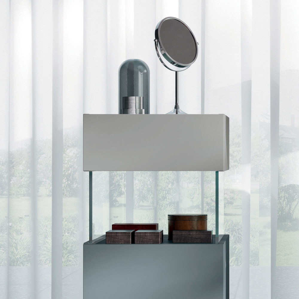 extrema linjäritet och mjukhet är det särdrag hos dubbelsängen som erövrar centrum för uppmärksamhet och blir den verkliga huvudpersonen i sovområdet. Tillbehörsgruppen som avslutar rummets estetik kombineras perfekt tack vare dess