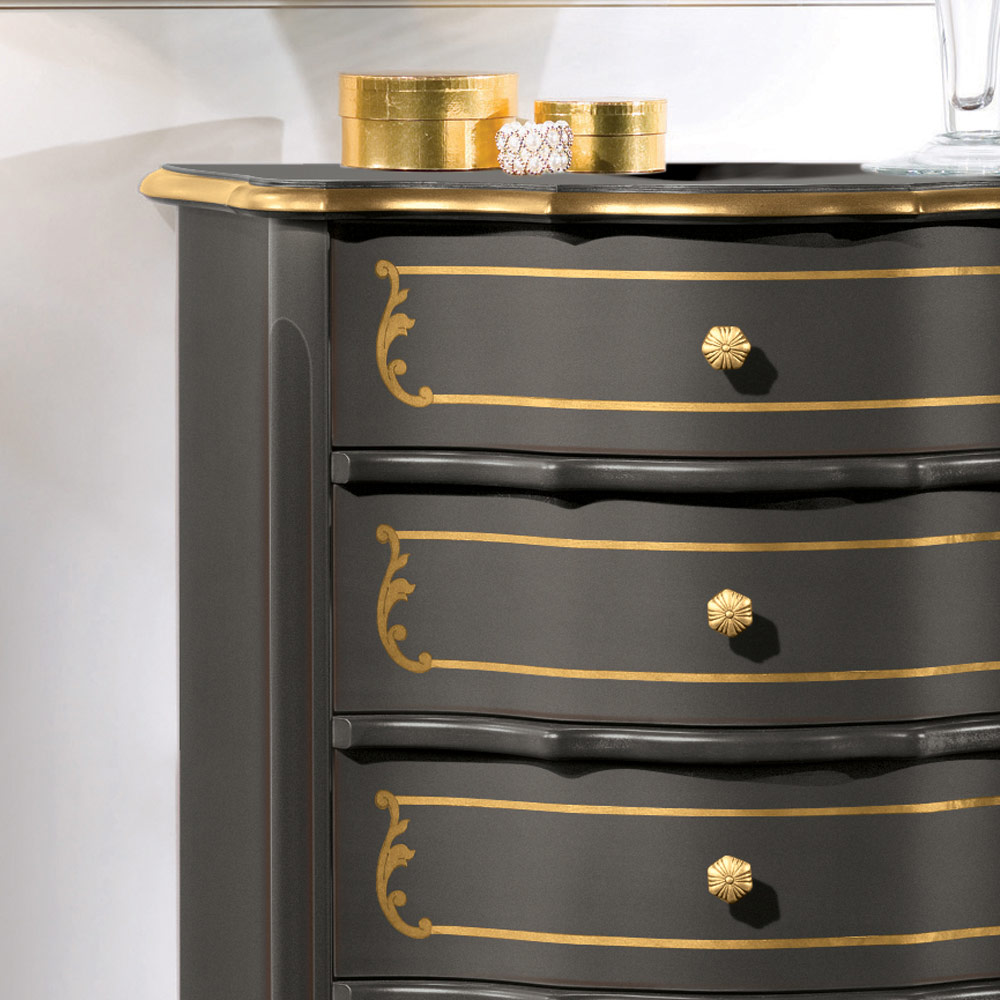 Sovrumsbyrå med 5 lådor i klassiskt Made in Italy trä.