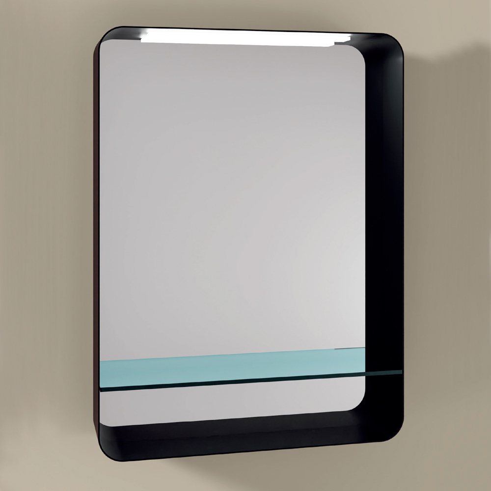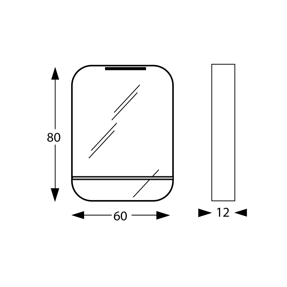 Denna rektangulära spegel med rundade kanter är en sann triumf för modern design. Dess metallram är ett djärvt uttryck av elegans och stil , medan den integrerade glashyllan ger en touch av sofistikerad funktionalitet .