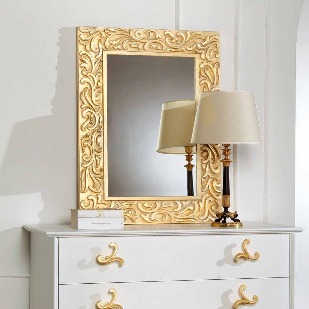 Spegeln Pepa kännetecknas av en hantverks genomföras med användning av material av hög kvalitet och med användning av erfarenhet av skickliga italienska hantverkare. Ramen är gjord av trä med hartstillämpningar. bladguld inlagd finish. Spegelglas, 4mm tjock. Made in Italy.