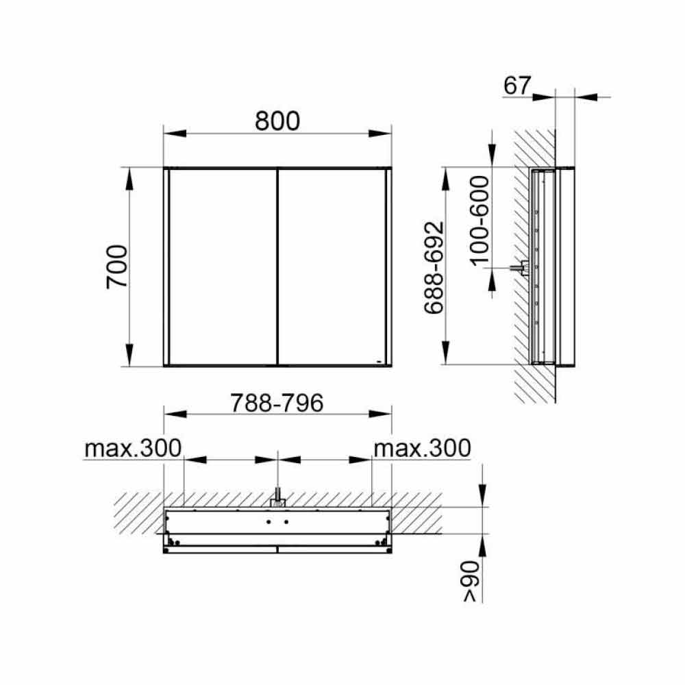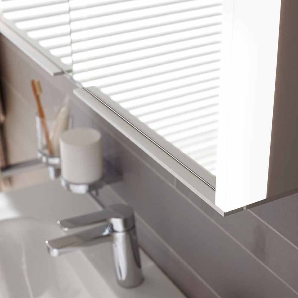 LED-belysning som är lätt att justera och dimma genom den elektroniska sensoromkopplaren, vilket skapar en unik atmosfär i rummet. När de väl har öppnats, roterar de två dörrarna runt ljusbanden och möjliggör optimal belysning både när den är stängd och när den är öppen.