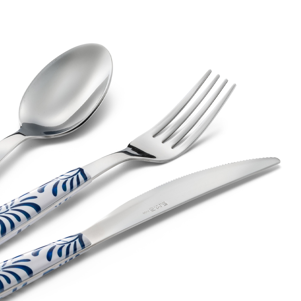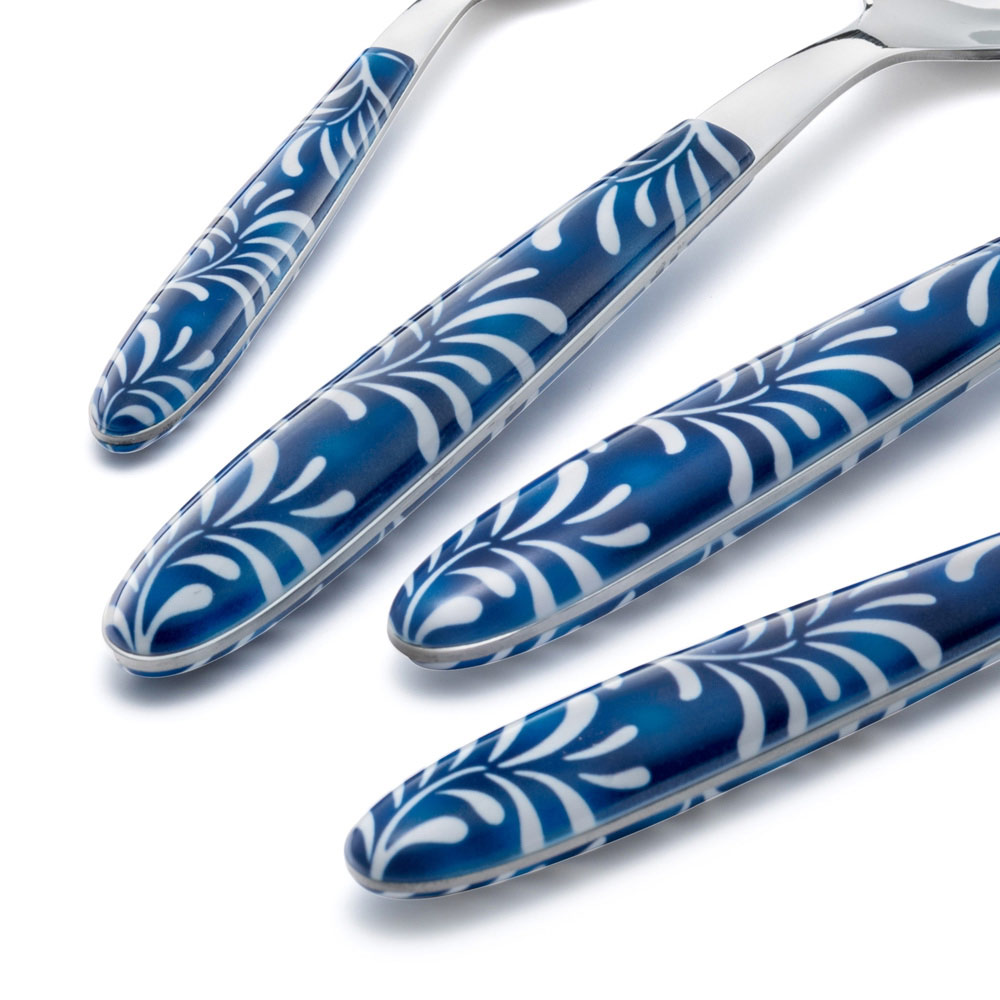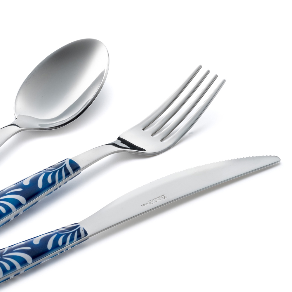 Bestickset i rostfritt stål och vitt eller blått dekorerat plasthandtag, 24 delar tillverkade i Italien.