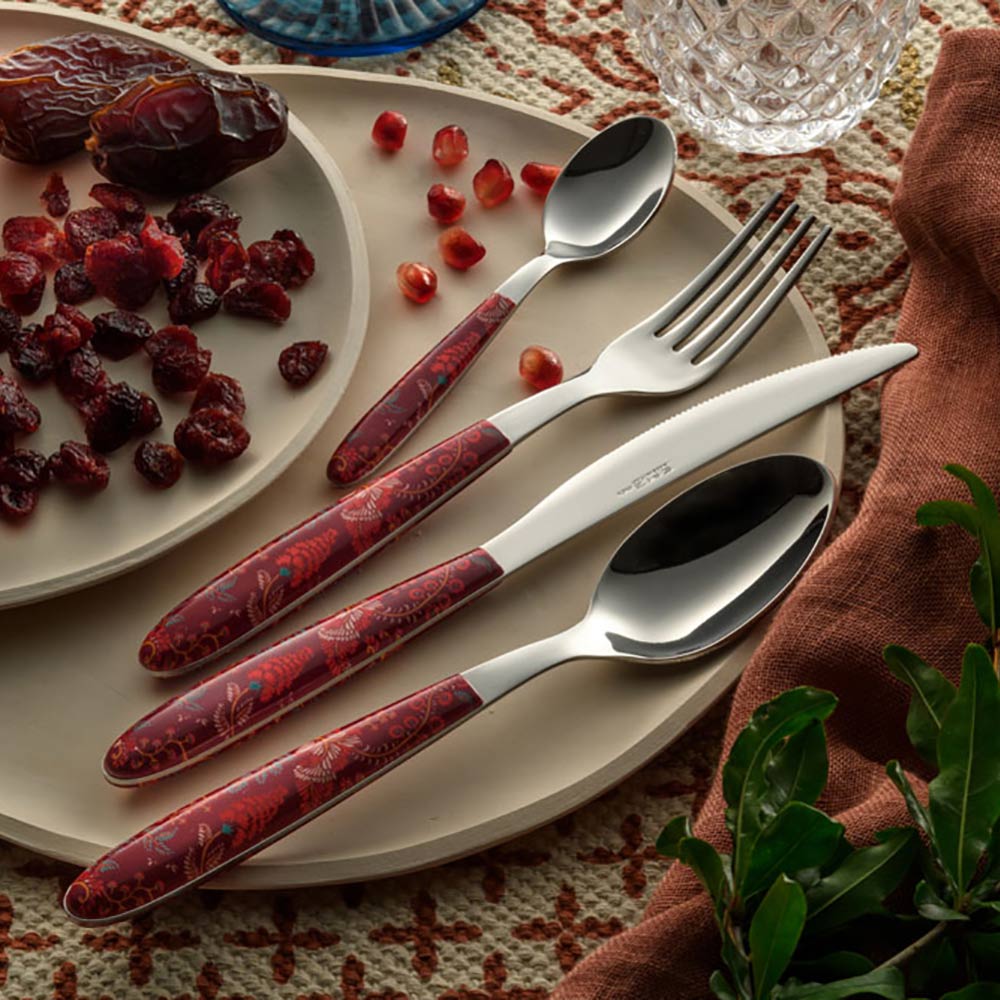 18/10 rostfria bestick, det vill säga med 18% krom och 10% nickel, som garanterar utmärkt motståndskraft mot korrosion och enkel rengöring med en utmärkt hygienkoefficient.