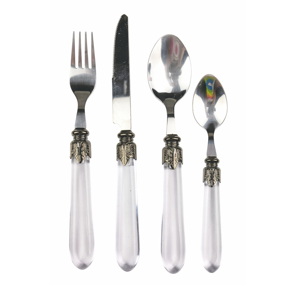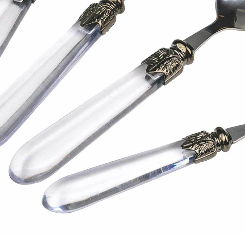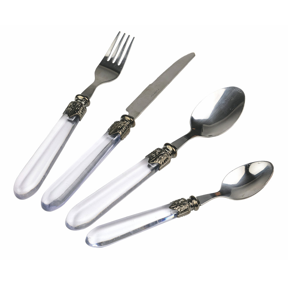 Bestickset i stål och genomskinligt plasthandtag, 24 st.