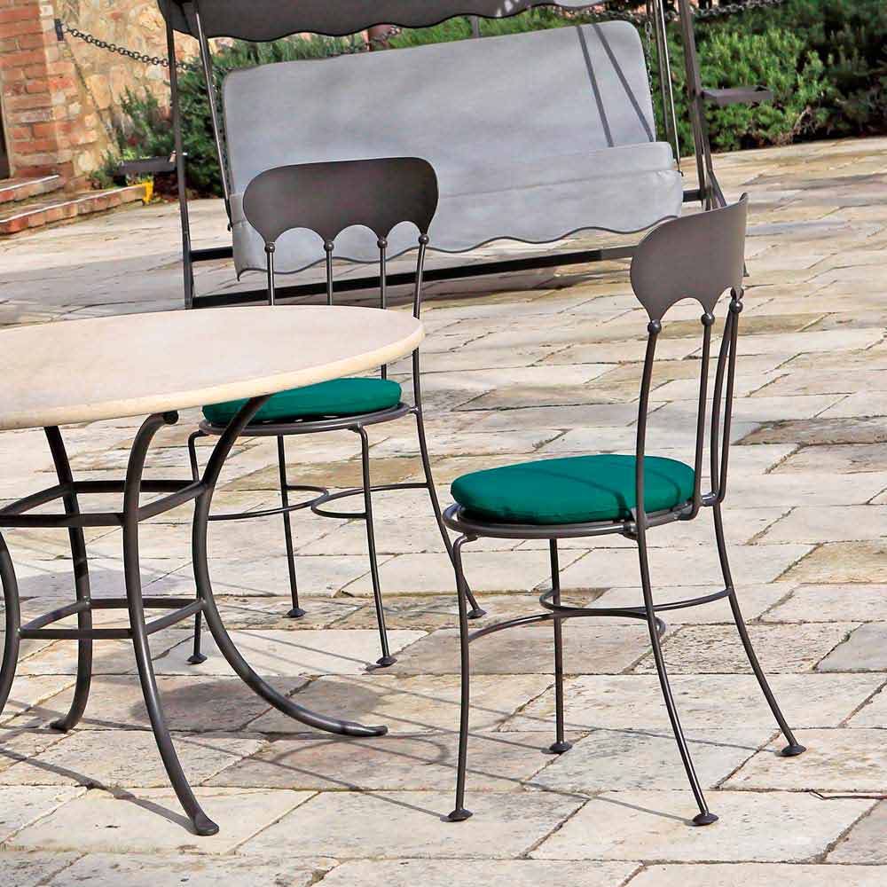 Stapelbar utomhusjärnstol med kudde handgjord i Italien, 2 stycken.