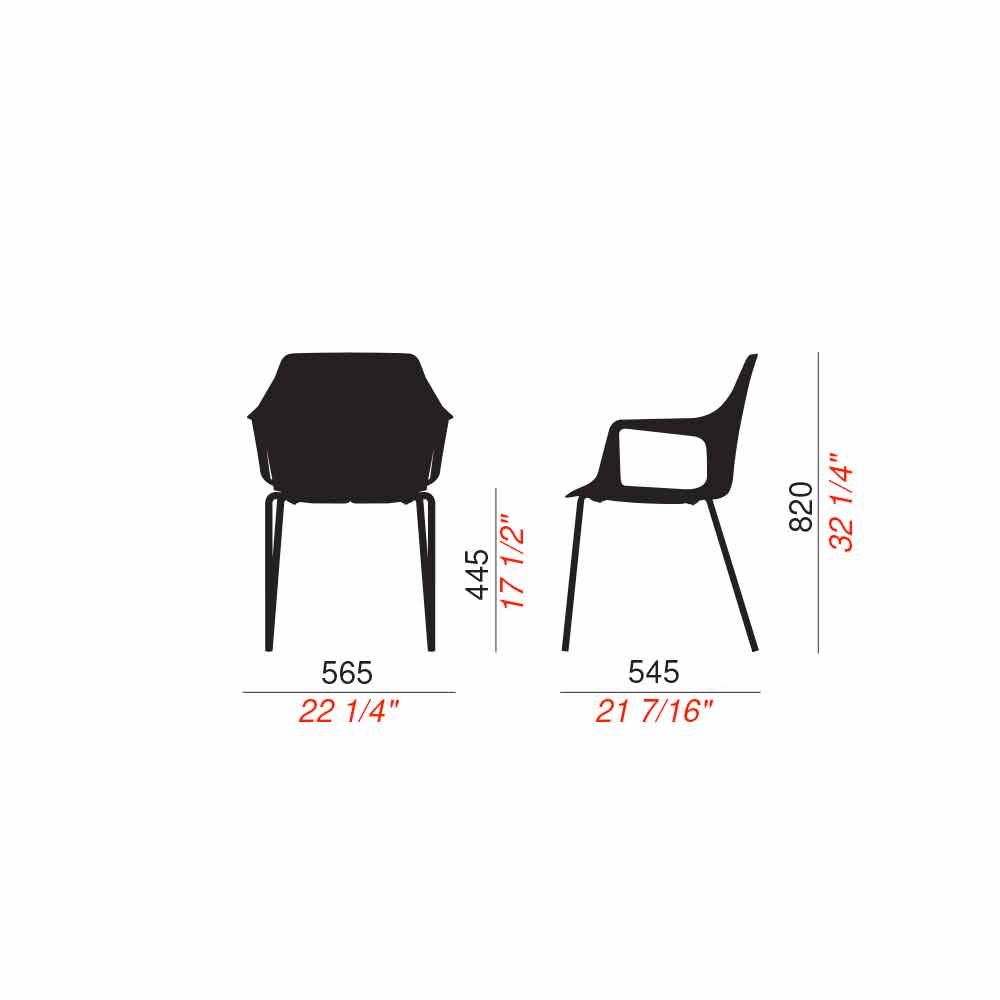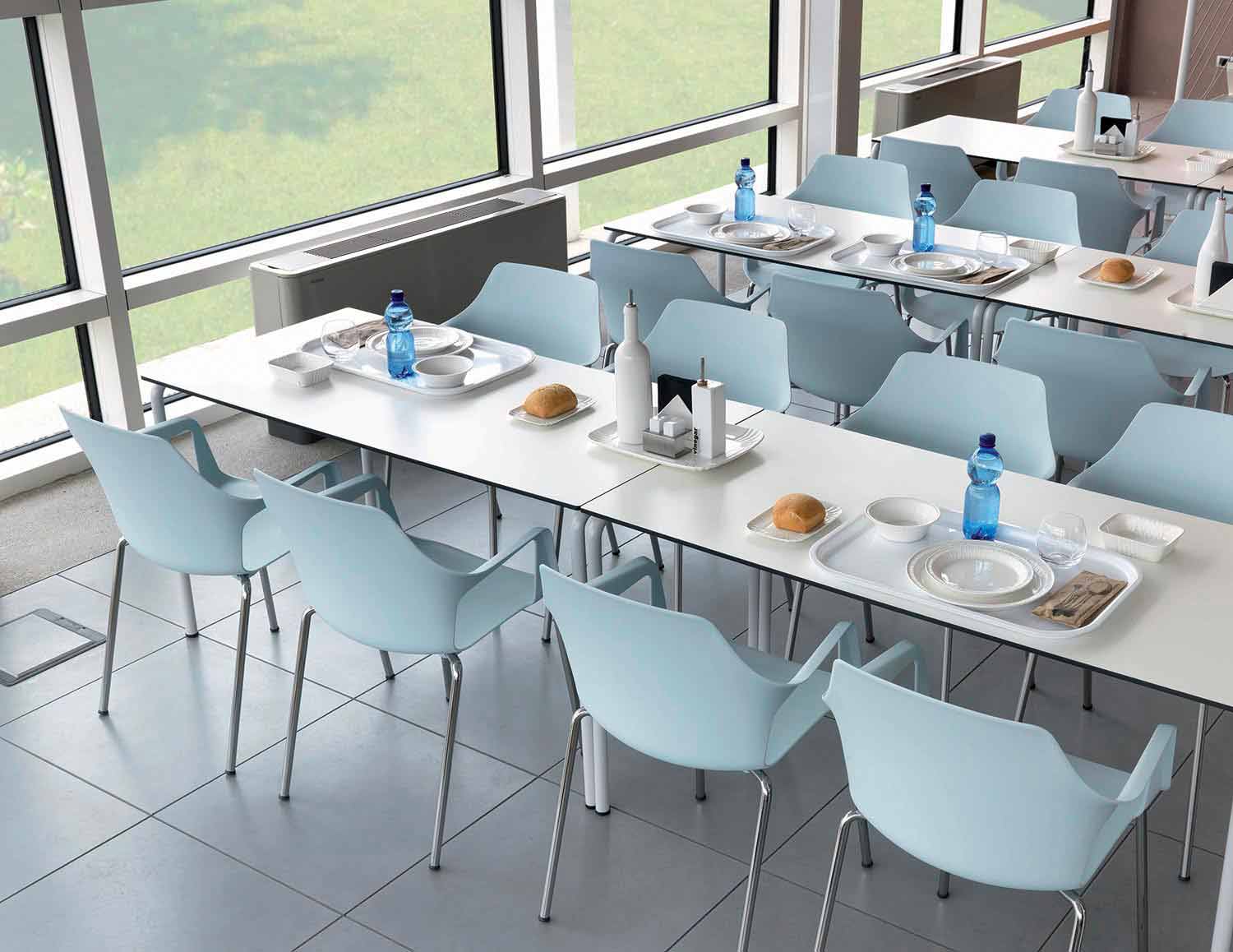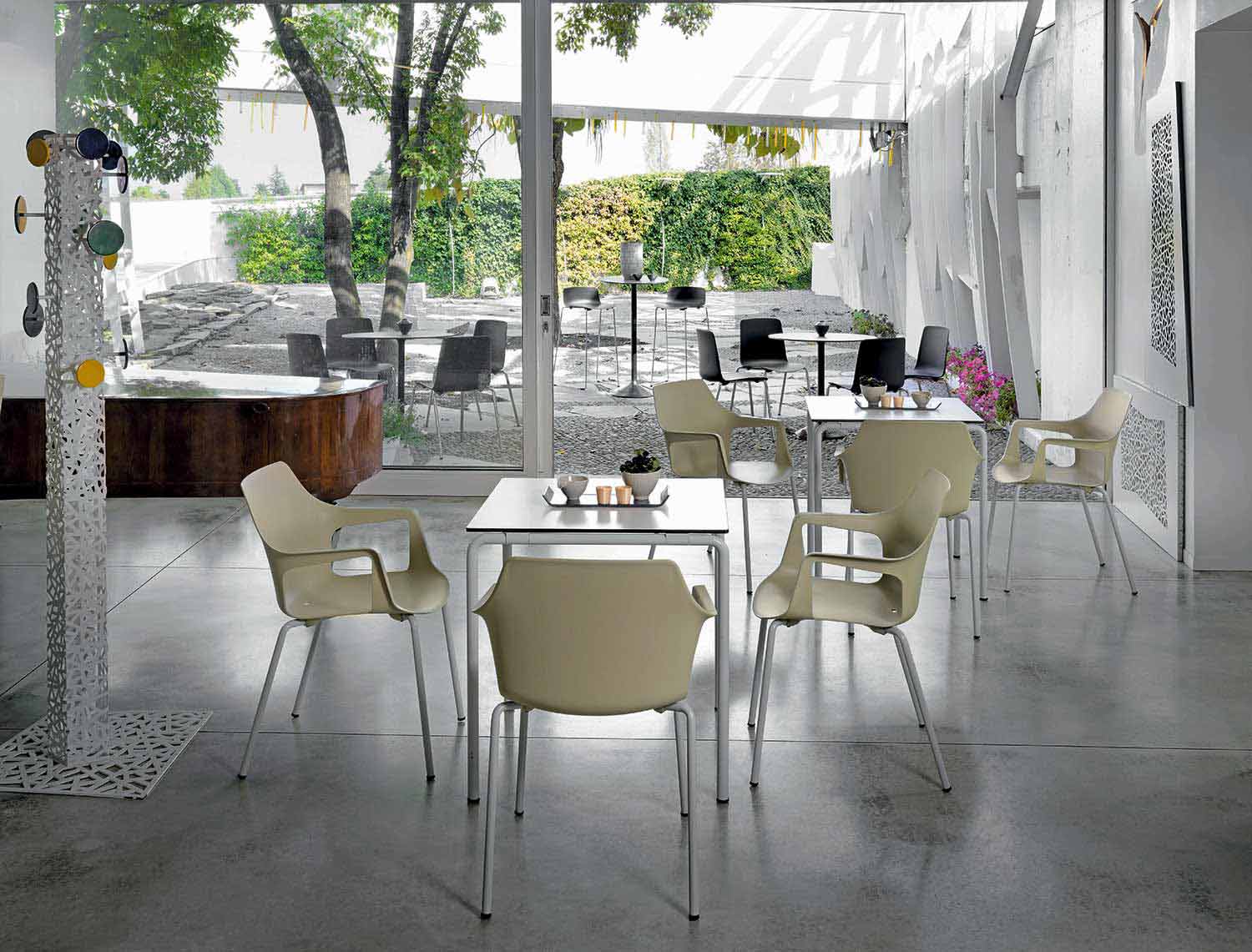 Stapelbar matstol och polypropylen matstol med armstöd Tillverkad i Italien, 4 delar.