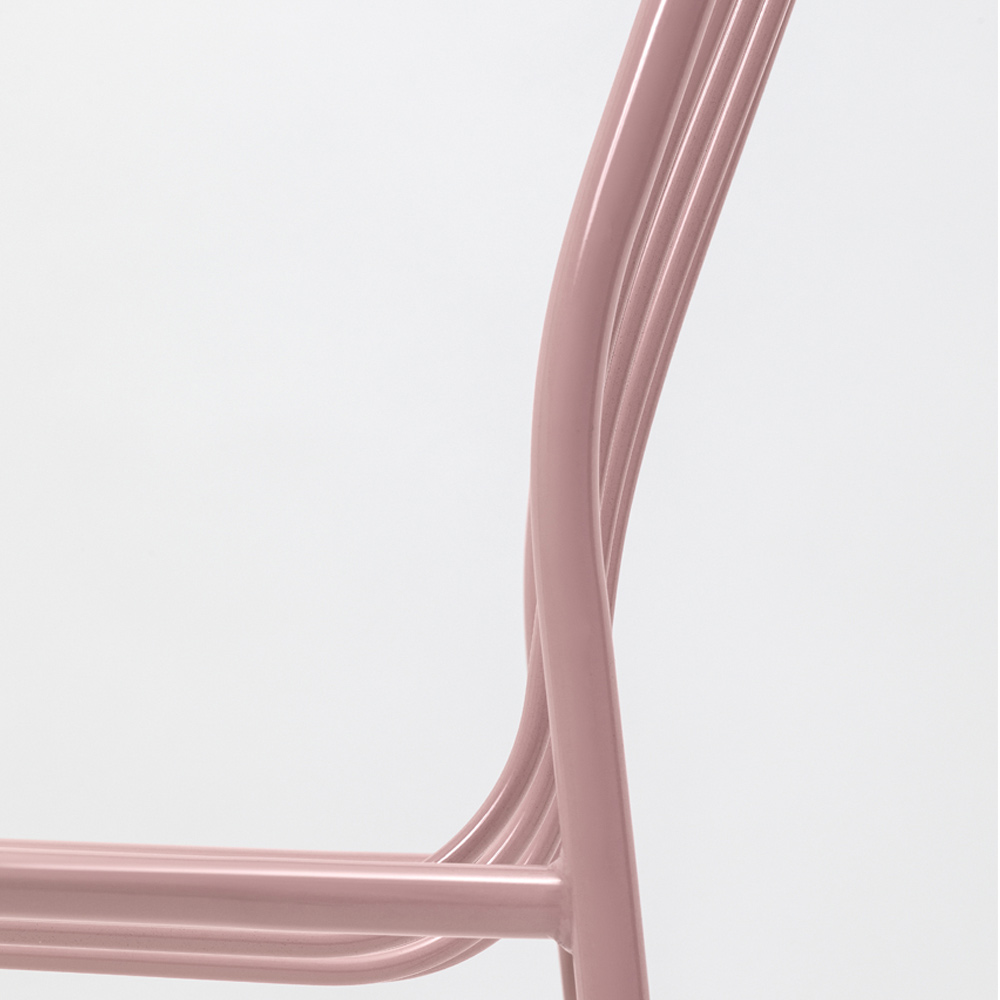stark modern personlighet . Möjligheten att stapla understryker också dess funktionella sida och gör den till en perfekt lösning även för kontraktsmiljöer som barer och restauranger där det är väsentligt att kunna optimera utrymmen när stolarna inte används.