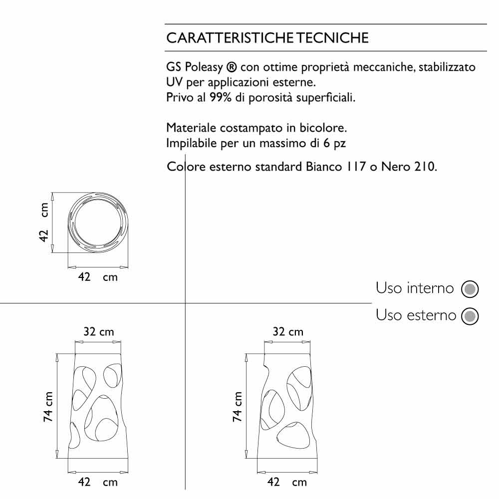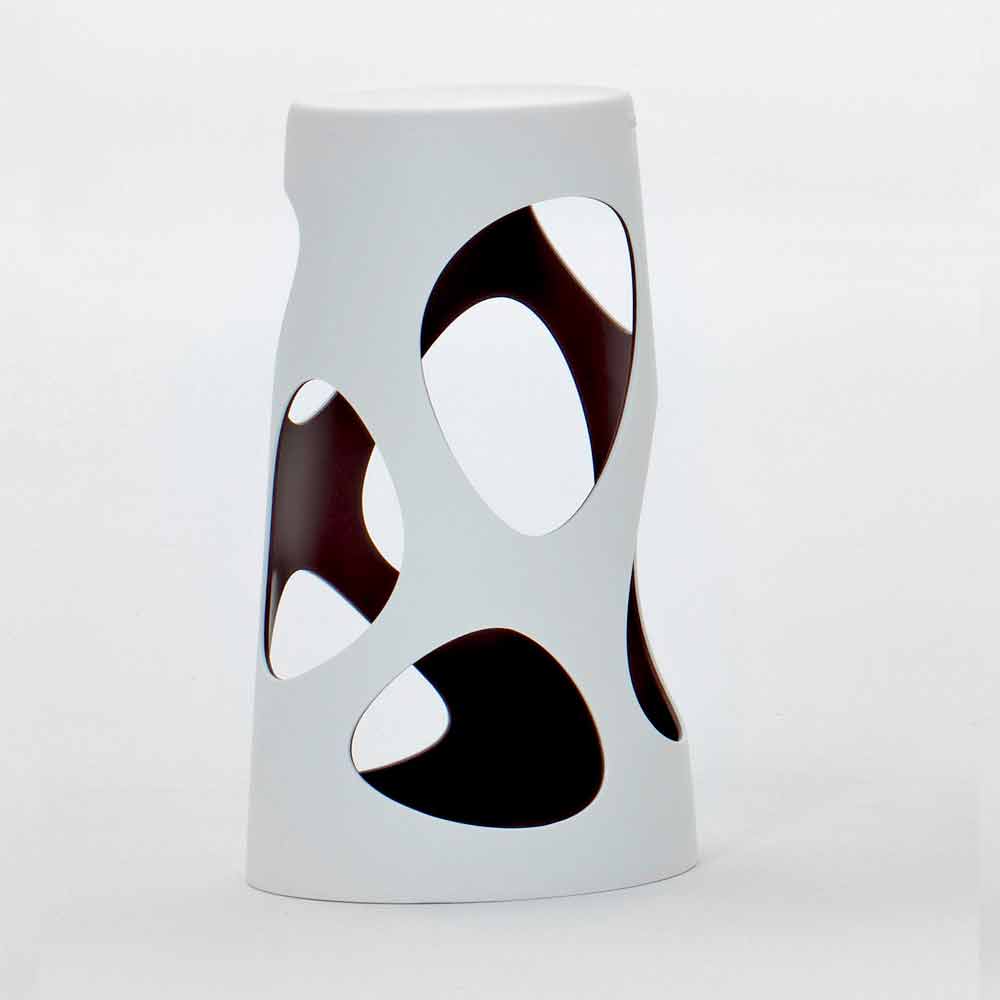 De stora hålen i avföringen, förutom att de är estetiskt tilltalande, har en viktig ergonomisk funktion som fotstöd för att säkerställa det perfekta sittplatsen för människor i olika höjder. Konstruktionen i Poleasy, det revolutionerande materialet som exklusivt används av Myyour, garanterar enastående tvättbarhet och hållbarhet.