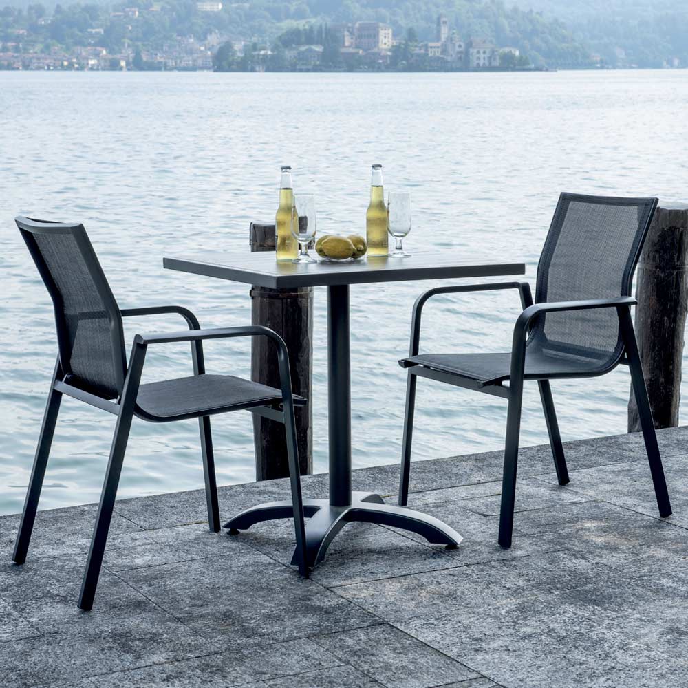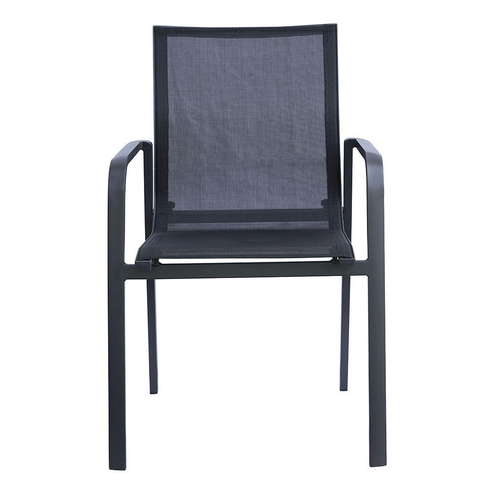 Kombinera modern stil och funktionalitet med denna stol i aluminium och textilene, utformad för att ge komfort och hållbarhet i alla utomhusmiljöer. Den lätta men robusta aluminiumstrukturen garanterar hållbarhet och oklanderlig väderbeständighet, vilket gör den idealisk för terrasser, trädgårdar eller kontraktsutrymmen.