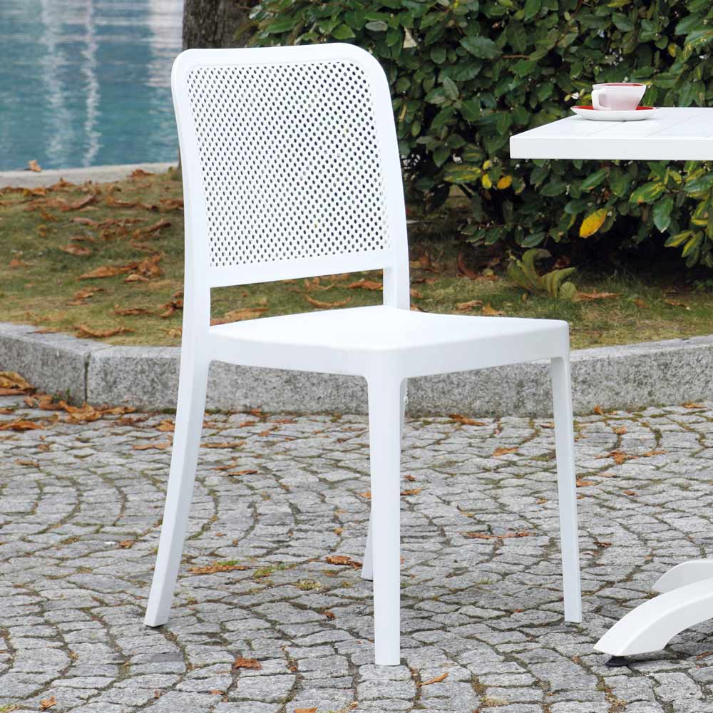 Denna trädgårdsstol utmärker sig för sin eleganta och minimalistiska design , perfekt för att lägga till en touch av stil till alla utomhusutrymmen. Polypropenstrukturen garanterar hållbarhet och motstånd mot väder och vind, vilket gör den idealisk för dagligt utomhusbruk.
