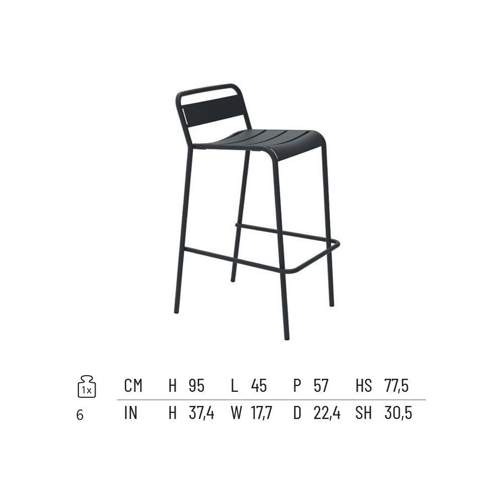 Stapelbar utomhuspall i pulverlackerat galvaniserat järn, färgad galvaniserad. Tillverkad i Italien.