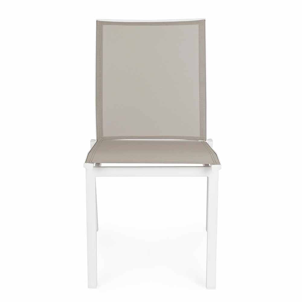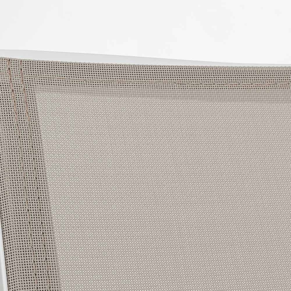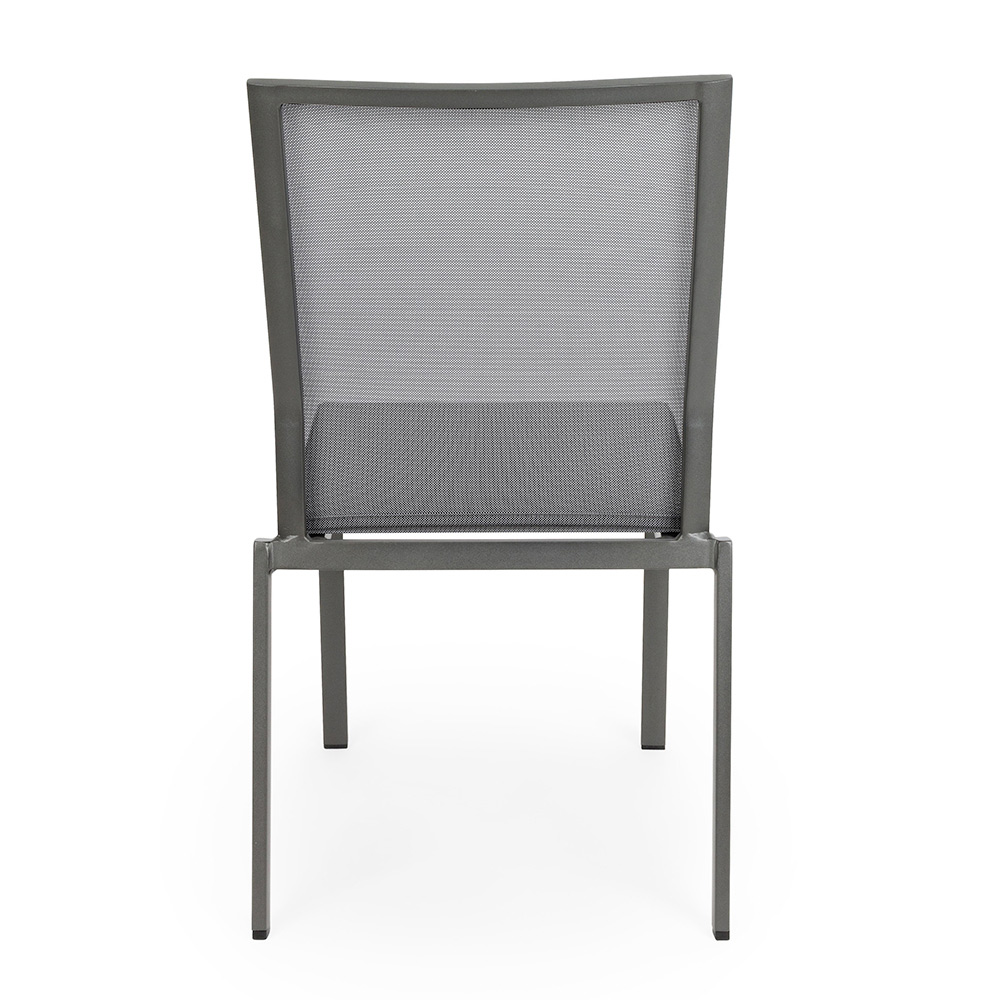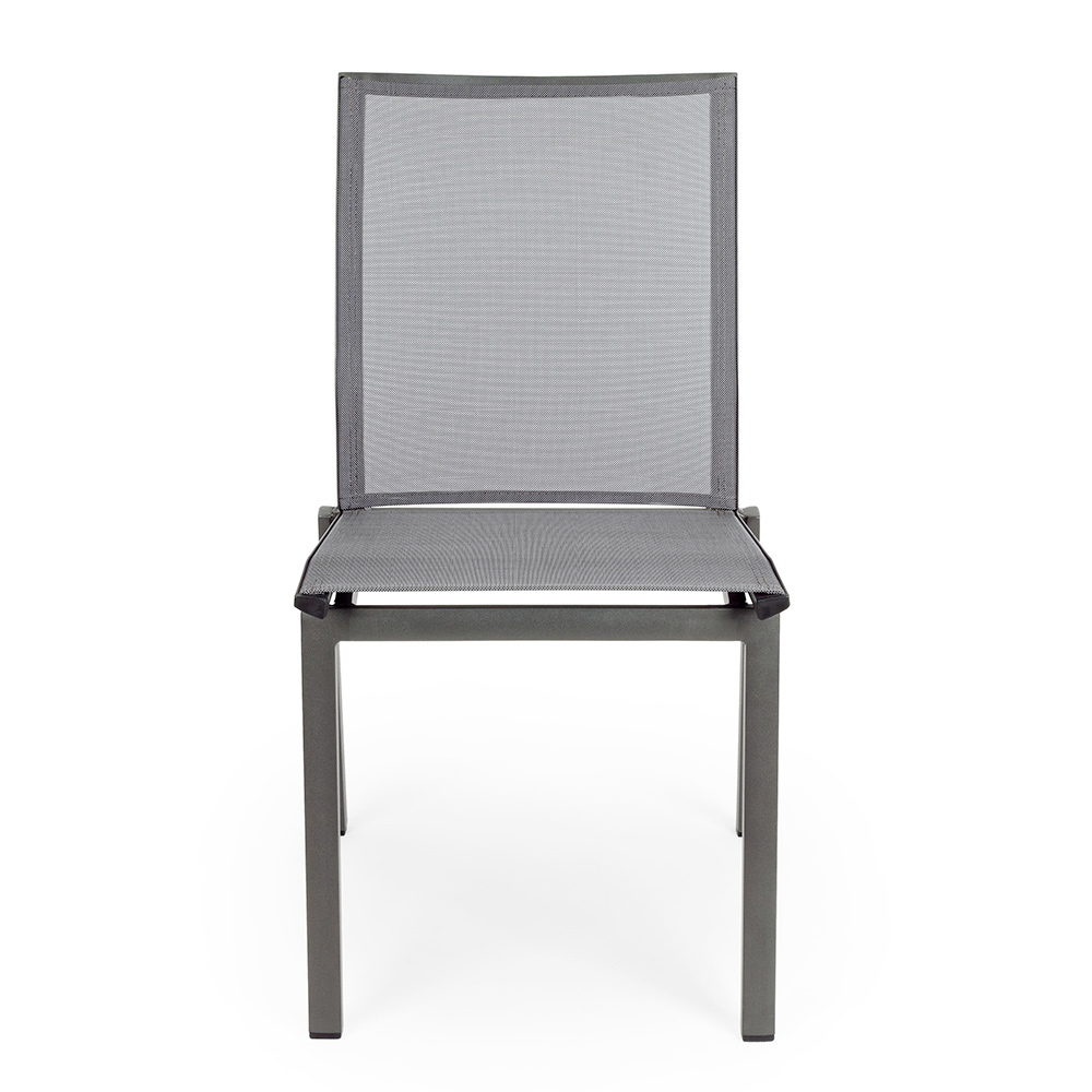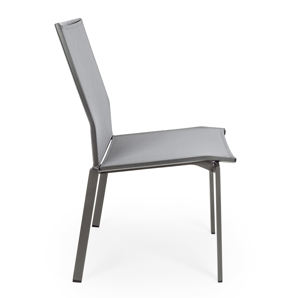 aluminiumstruktur (polyester). Sits och rygg klädda i 1x1 Phifer textilene. Stapelbar.