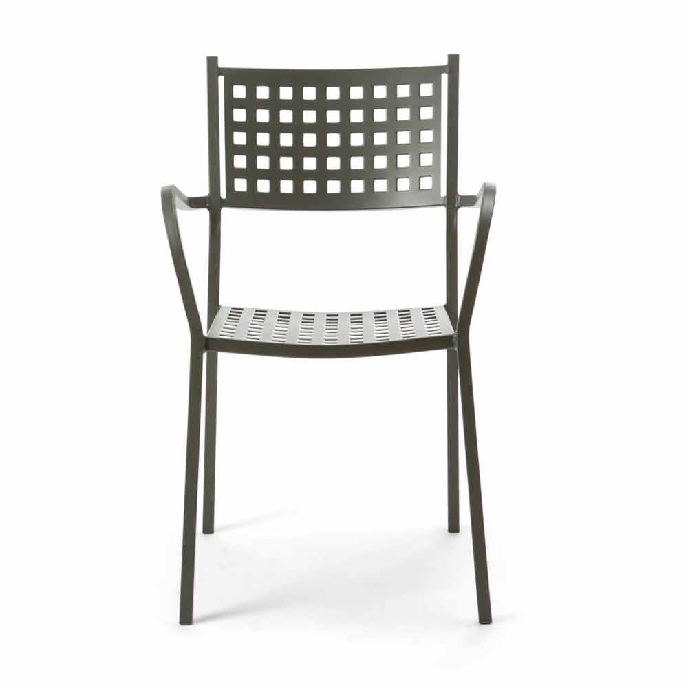 Modern utomhusstol tillverkad av pulverlackerad galvaniserad järn, stapelbar, Tillverkad i Italien, 8 delar.
