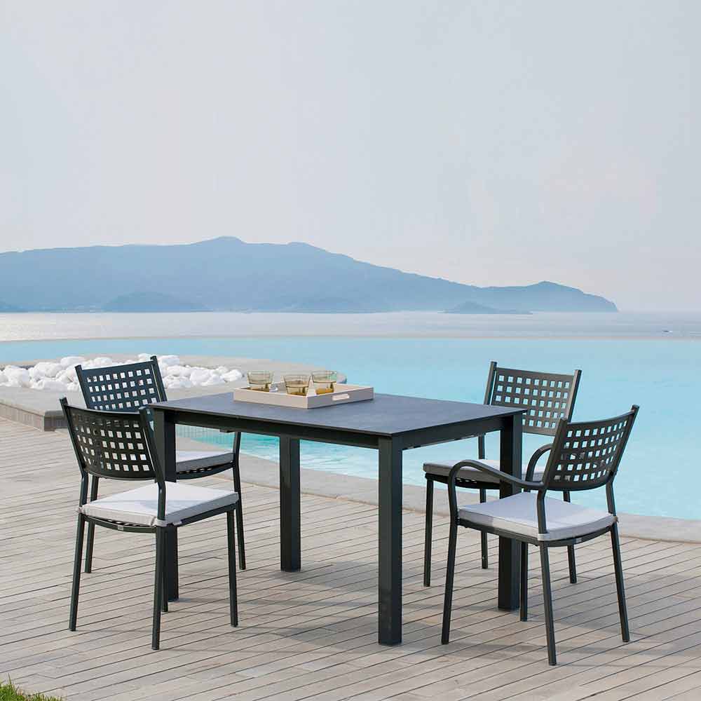 pulverlackerat galvaniserat järn, målat med härdande pulver, idealisk för behandling av utomhusprodukter och ger perfekt motståndskraft mot alla atmosfäriska faktorer. Tack vare det breda utbudet av tillgängliga färger passar denna stol perfekt in i alla utomhussituationer och ger