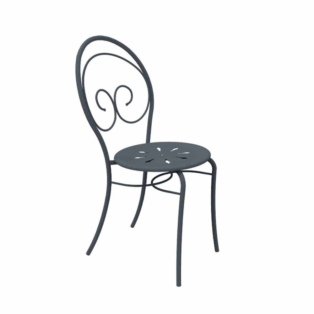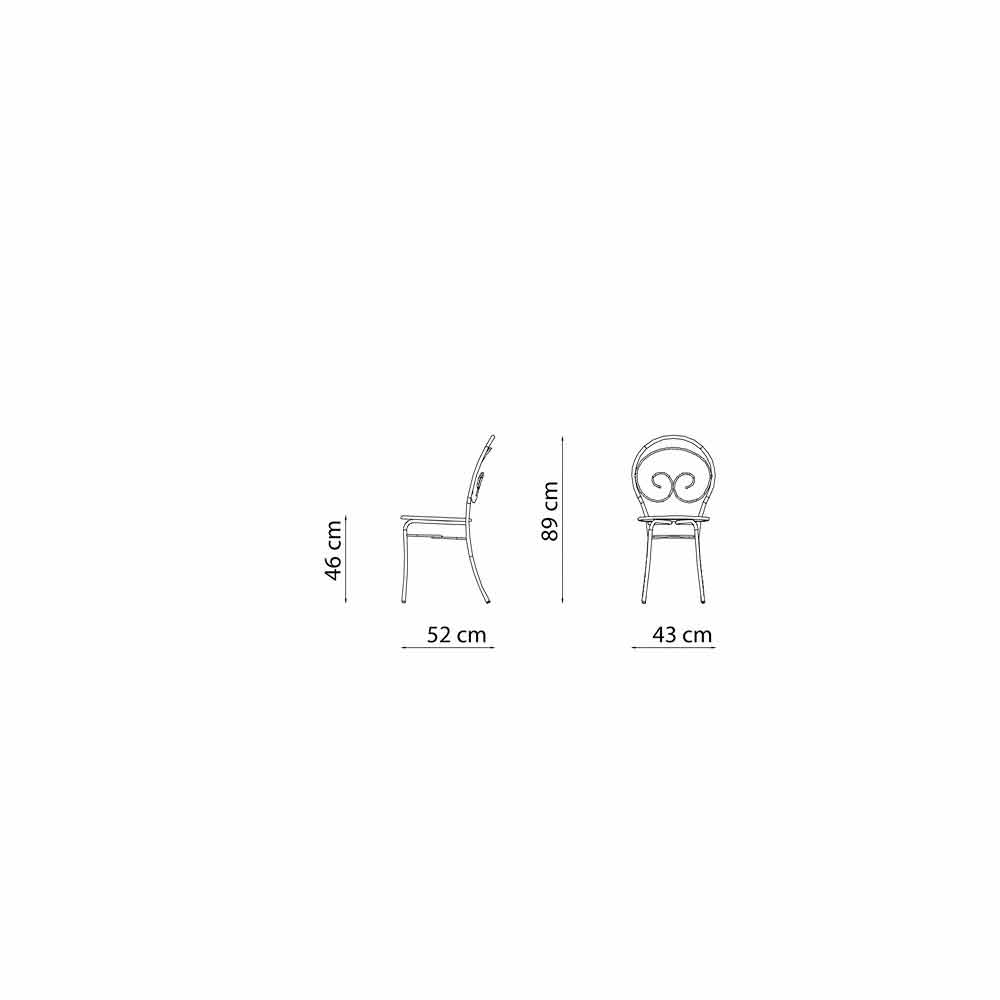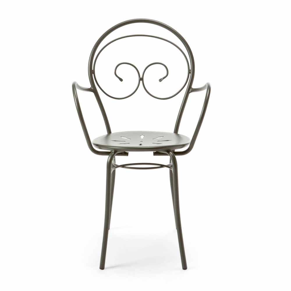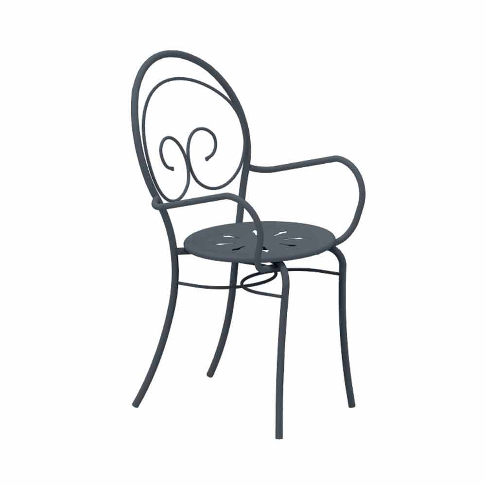 Stapelbar utomhusstol med eller utan armstöd i pulverlackerat galvaniserat järn. Tillverkad i Italien, 2 stycken.