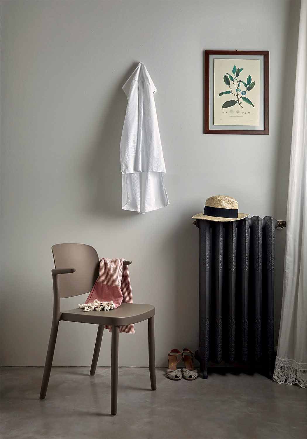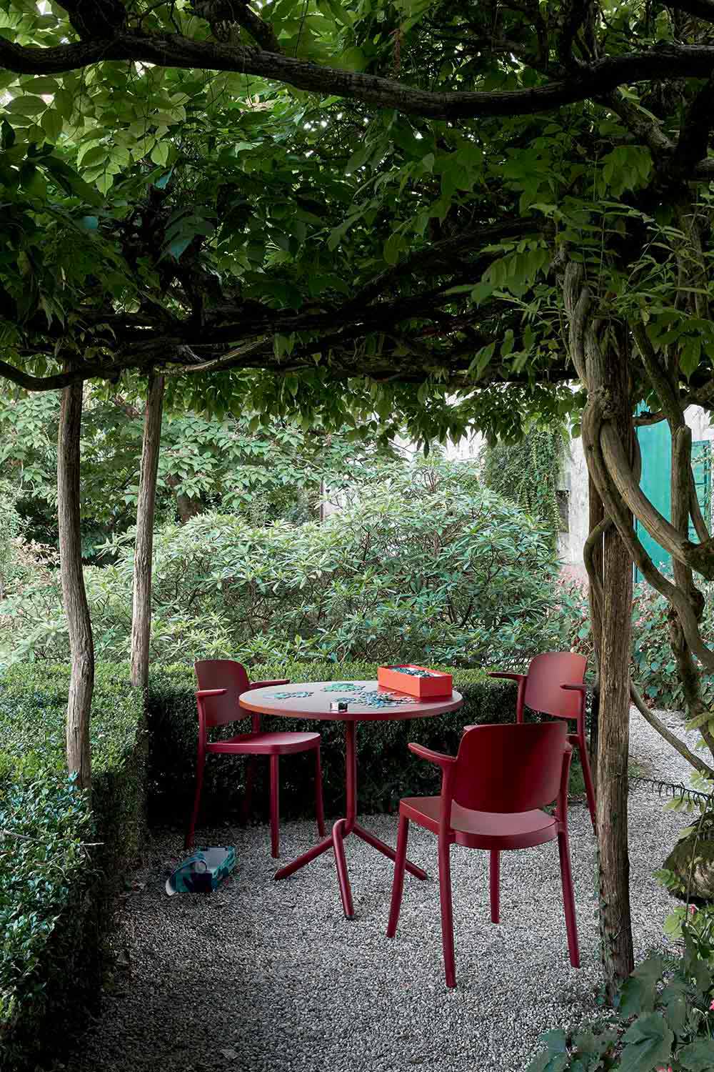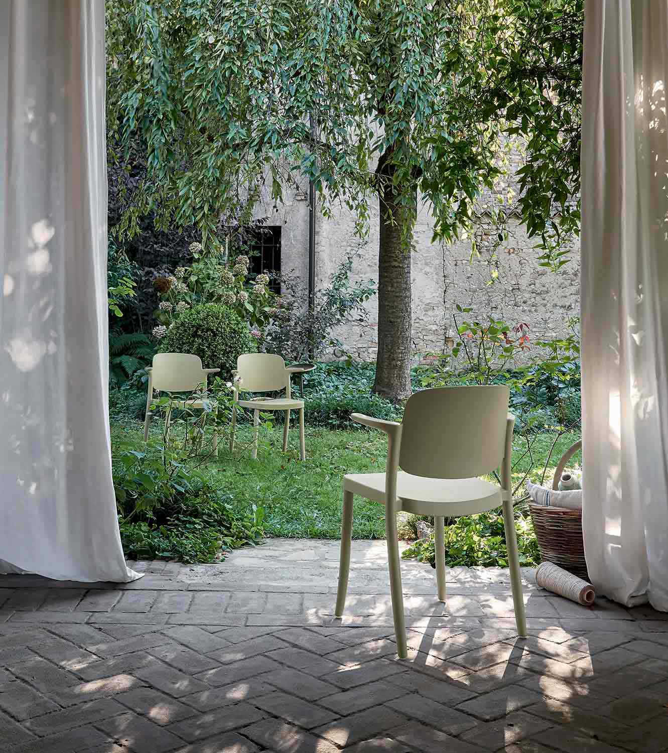 Bertina utomhusstol kännetecknas av en design som lyckas kombinera den tradition som vi finner i formen med moderniteten i polypropylen som gör den motståndskraftig mot alla väderförhållanden.