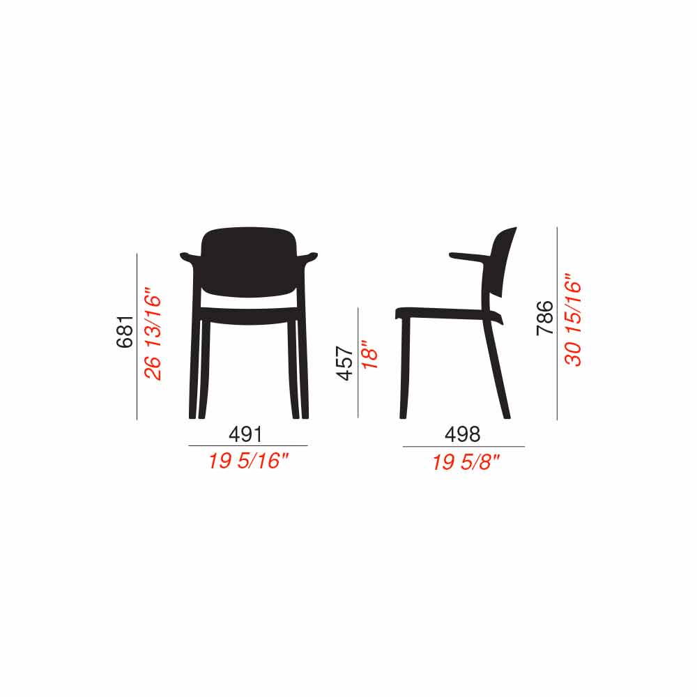 Utomhusstol av polypropylen design med stapelbara armstöd, 4 delar, tillverkade i Italien.