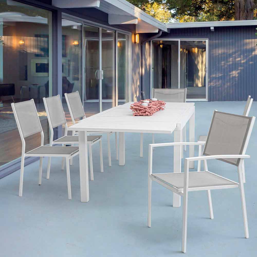 Stapelbar trädgårdsstol i aluminium och textilene, vit eller grå - Floraforma