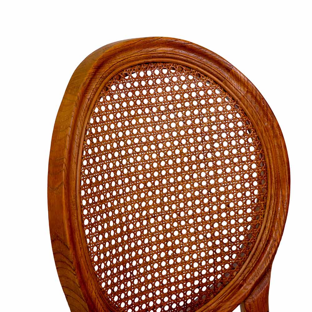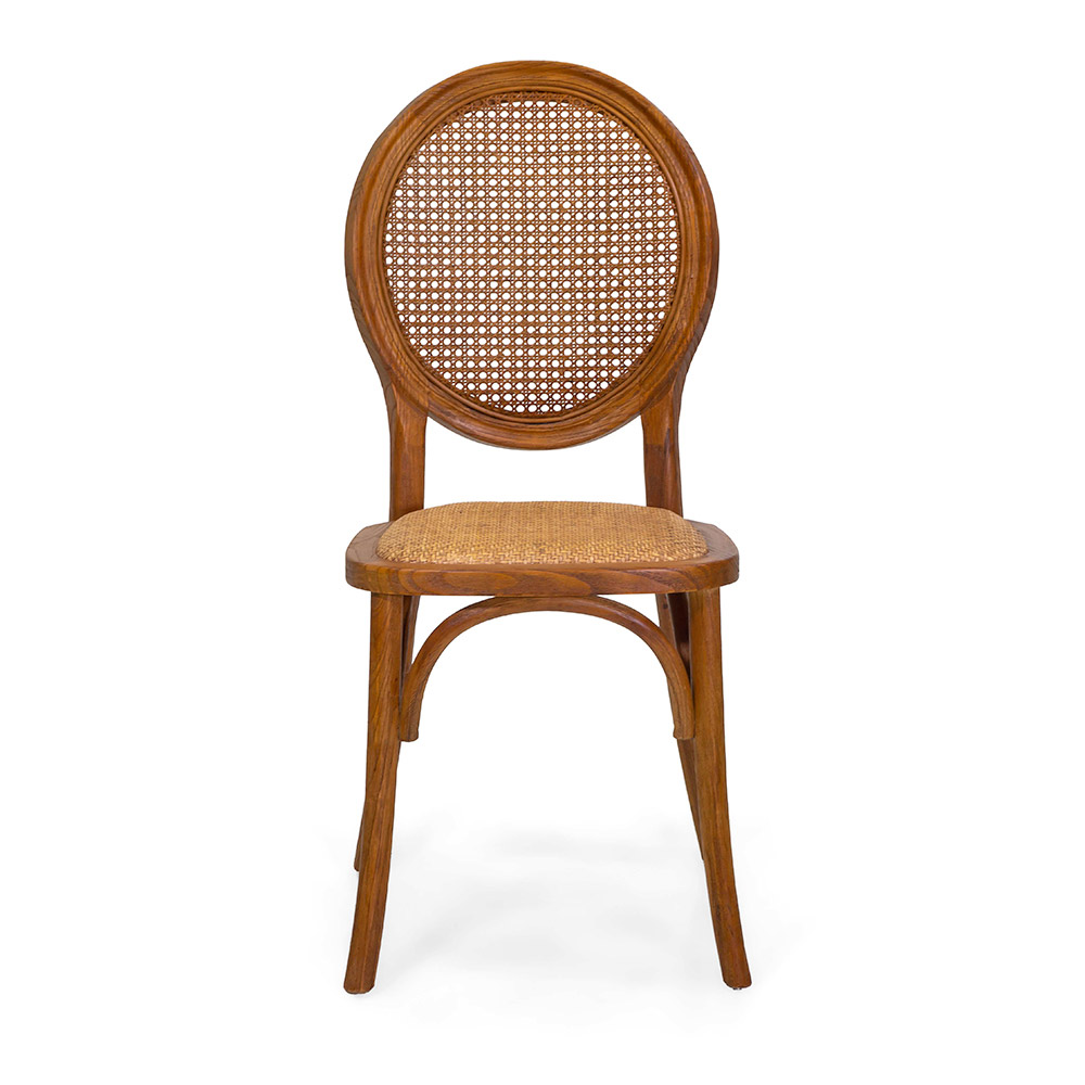 Tillverkad av trä uttrycker denna stol en tidlös skönhet som kännetecknas av en solid och motståndskraftig struktur. Det ovala ryggstödet i vävt wienerstrå ger en touch av retro elegans , vilket gör den idealisk för miljöer med en klassisk eller shabby chic smak.