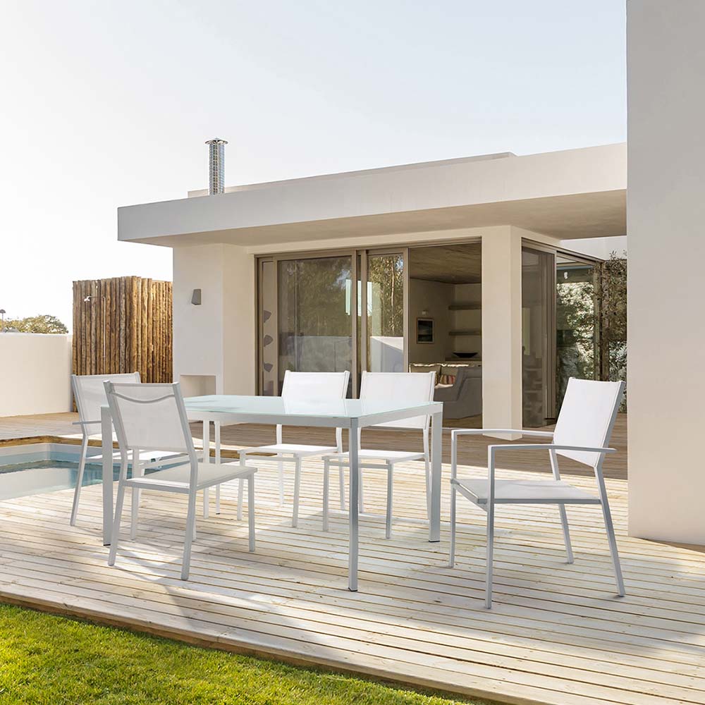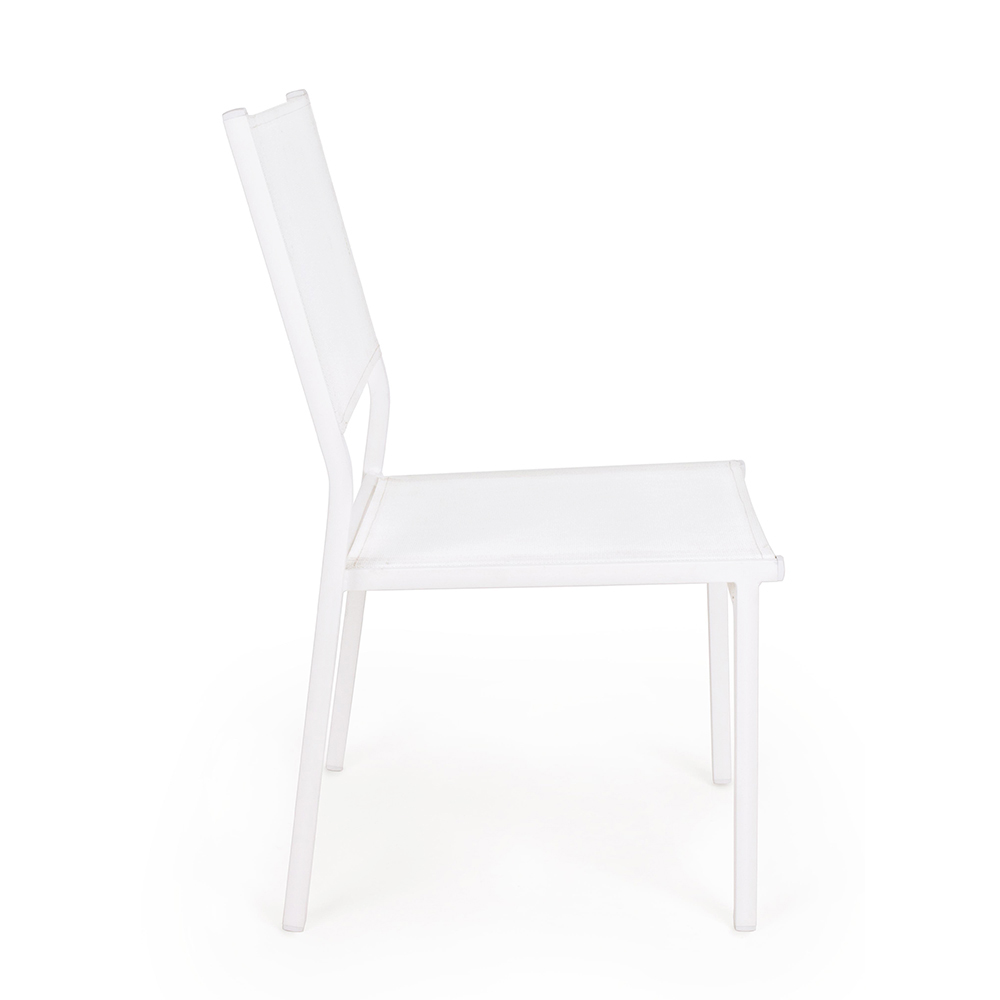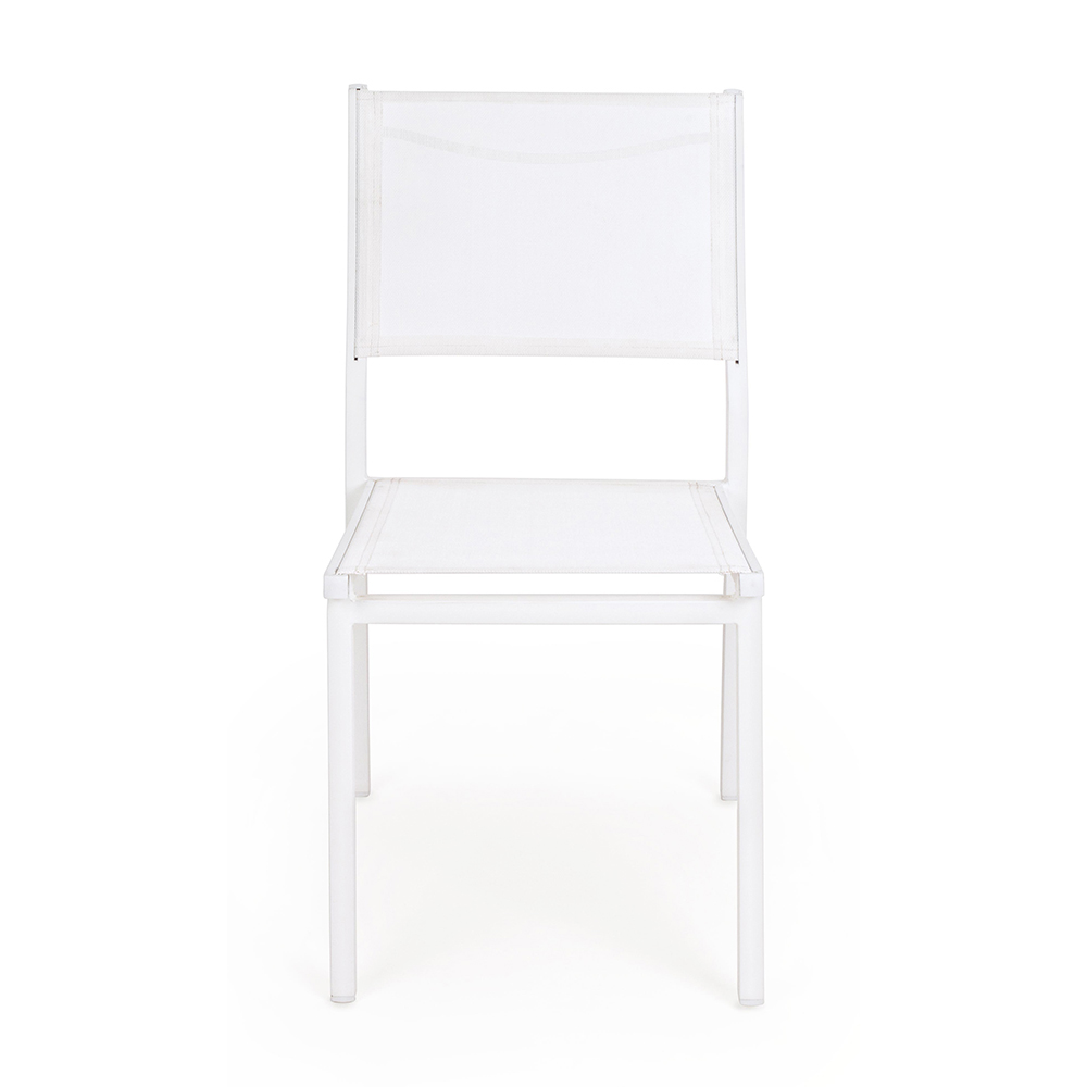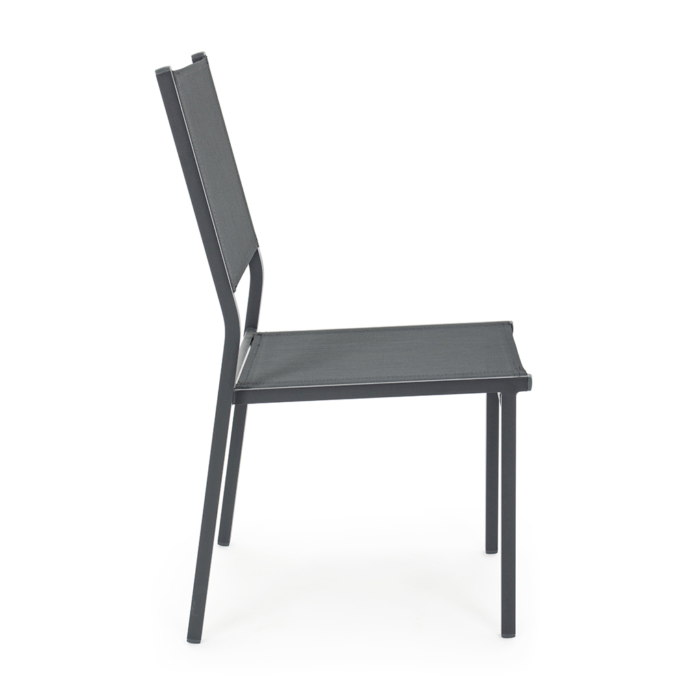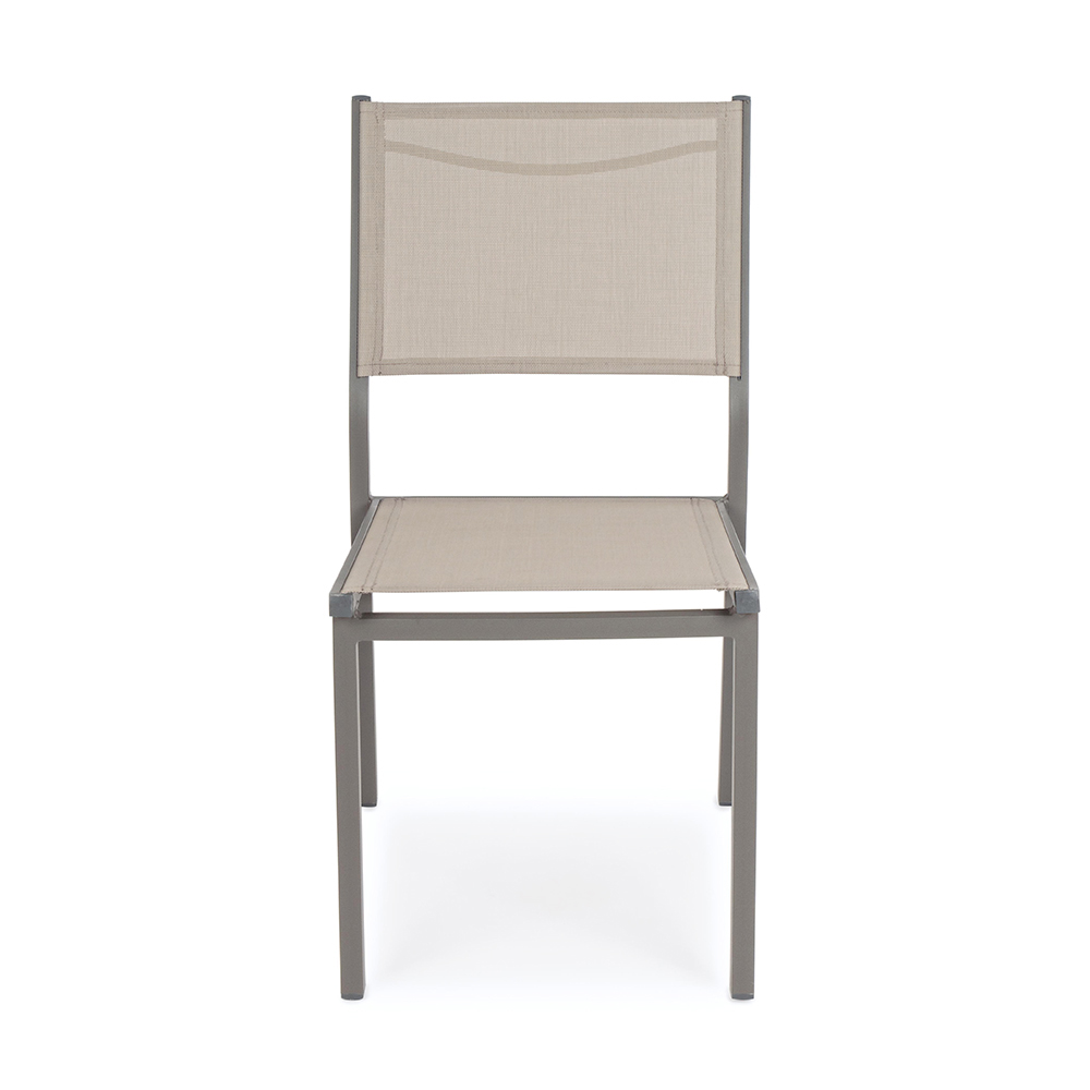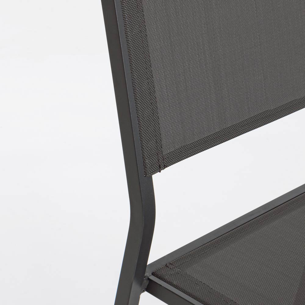Modern stapelbar trädgårdsstol av aluminium och textilene, utomhusartikel.