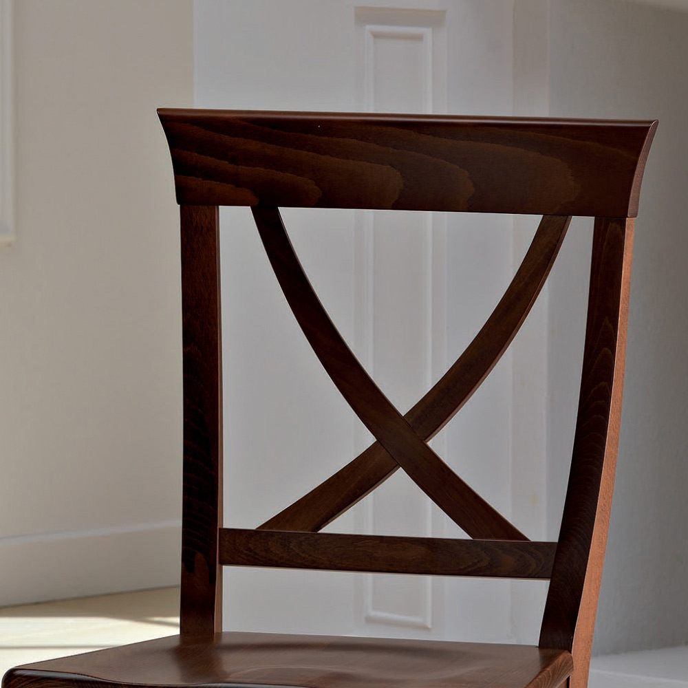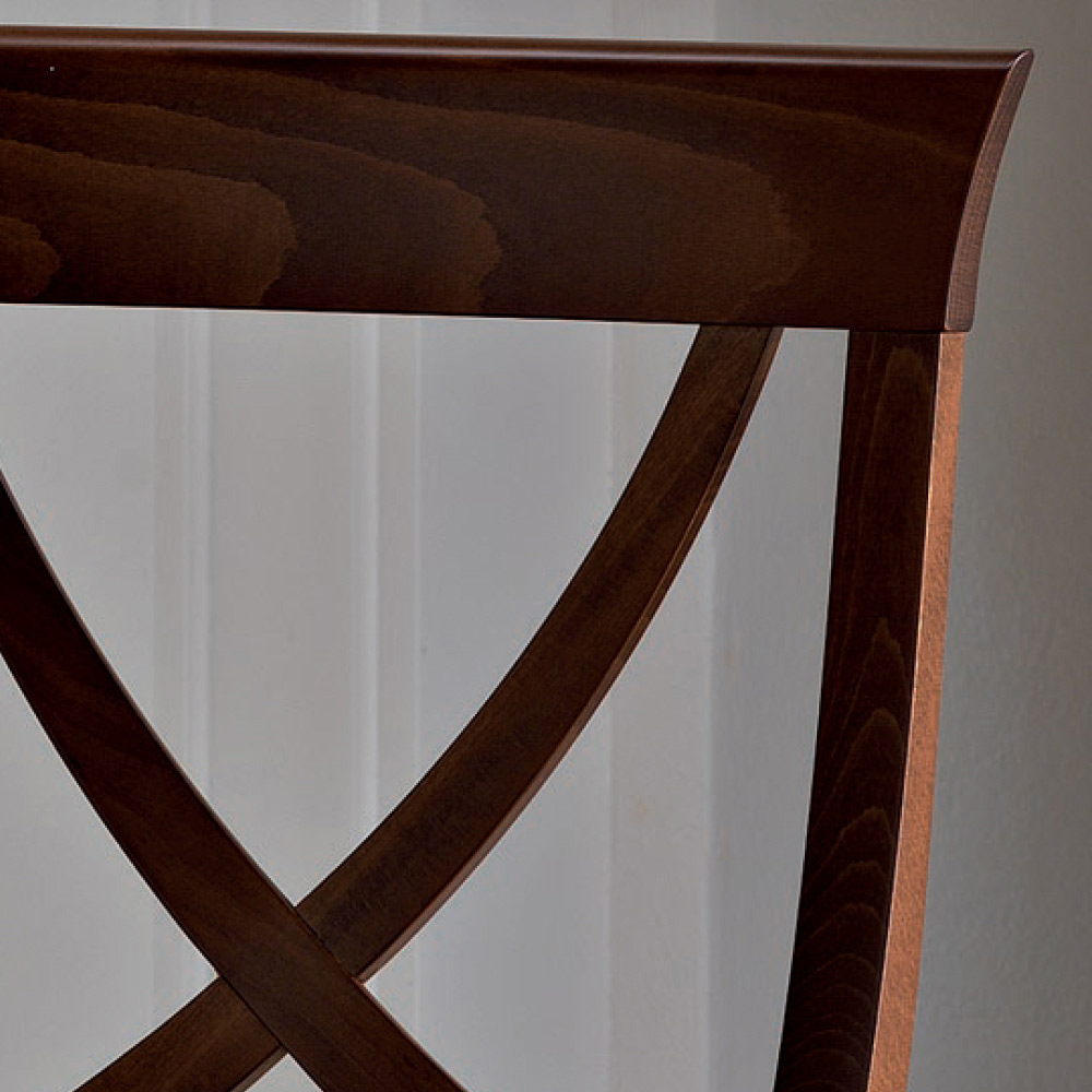 Stol i massivt trä med korsad rygg, lyxtillverkad i Italien.