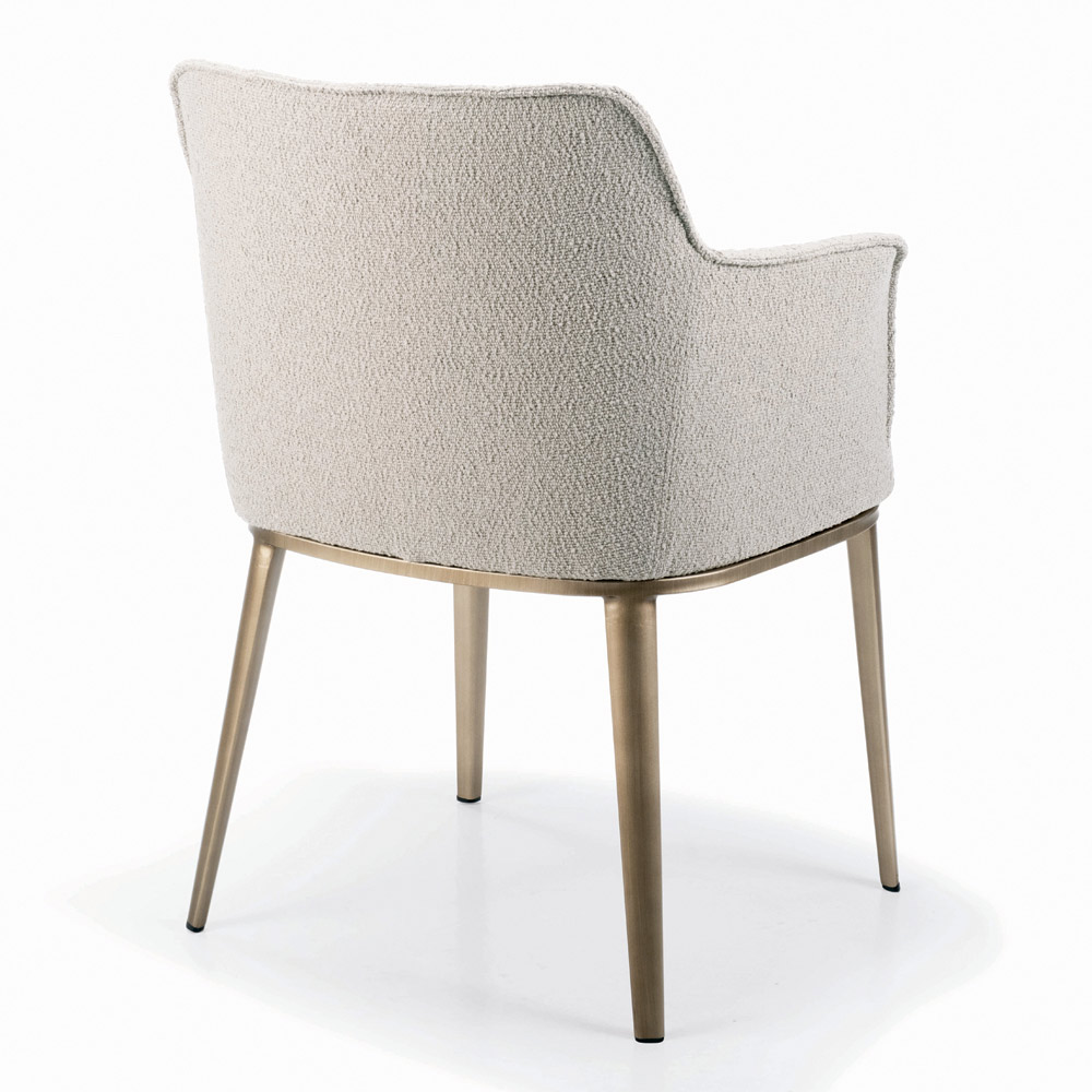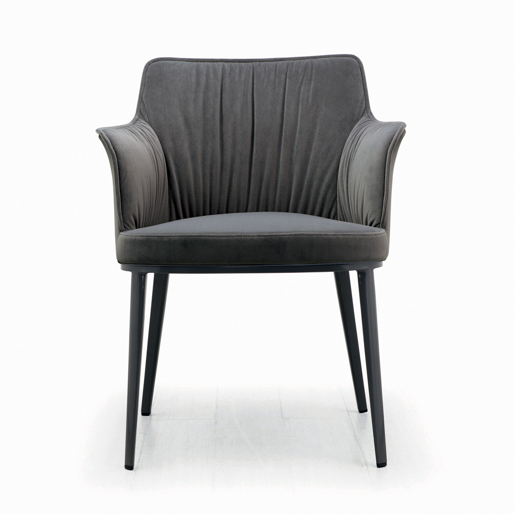 Vardagsrumsstol tillverkad med stålsits och ryggstöd helt klädd i tyg eller sammet och lackerade stålben. Essentiellitet och minimalism är de speciella egenskaperna hos denna inredningstillbehör med en modern stil designad för dem som älskar enkla möbler men samtidigt med en stark visuell effekt . Den estetiska lättheten som präglas av dess former är dess största styrka, vilket gör att den kan sättas in i alla sammanhang och alltid framstå som unik och originell .