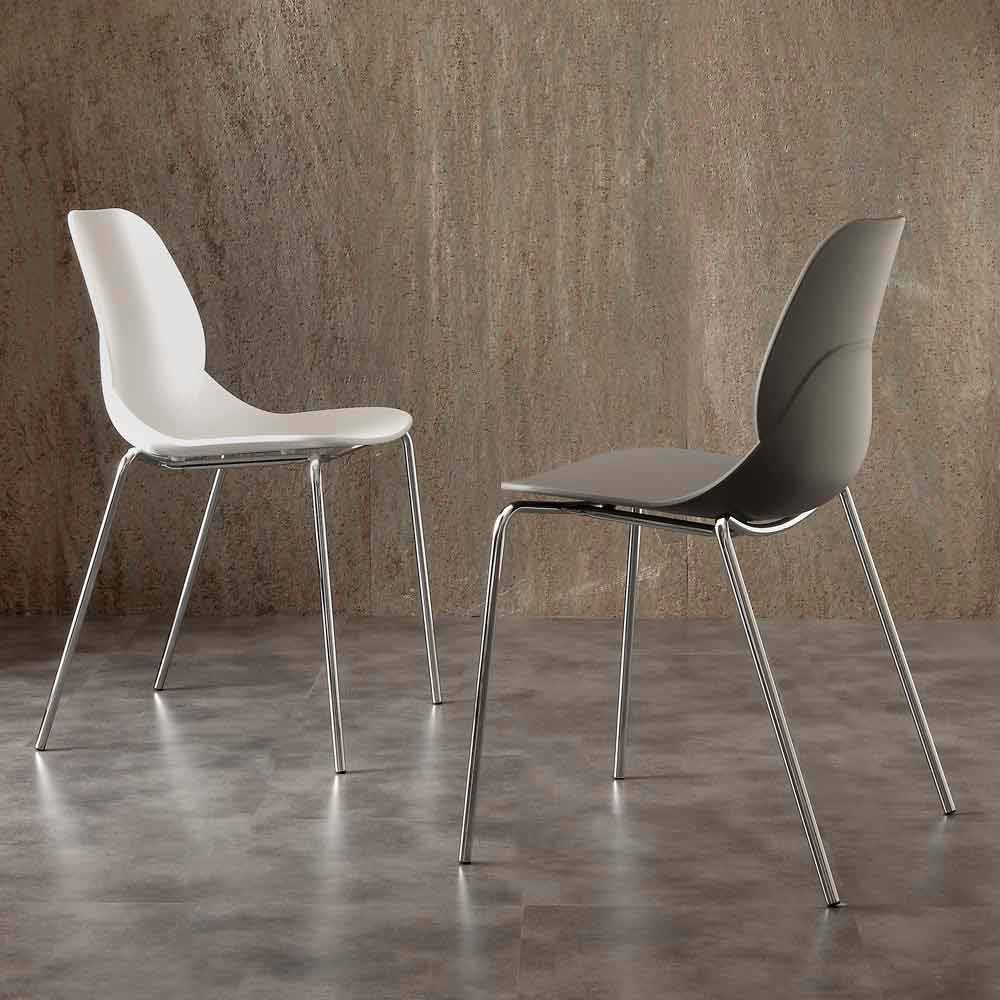 Stol med krom struktur och polypropen skal Licata