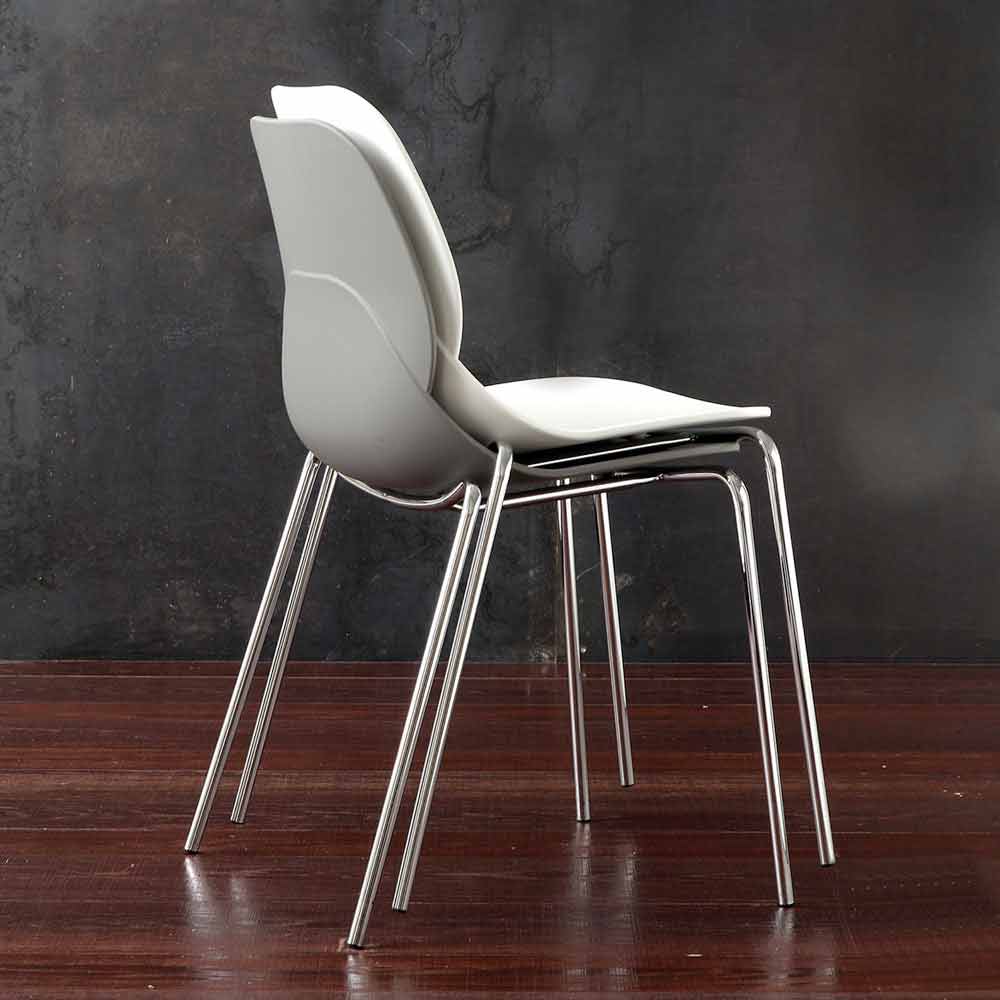 Varje Licata stol utgörs av en metallstruktur i en kromfinish och en kropp gjord av polypropylen, finns i två olika färger: Vit eller grå RAL 7037 kvarts.