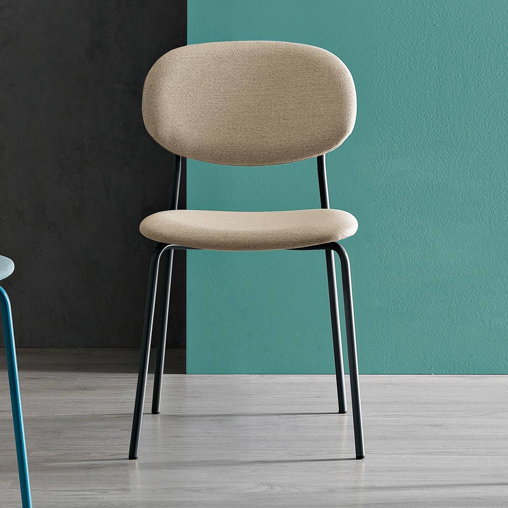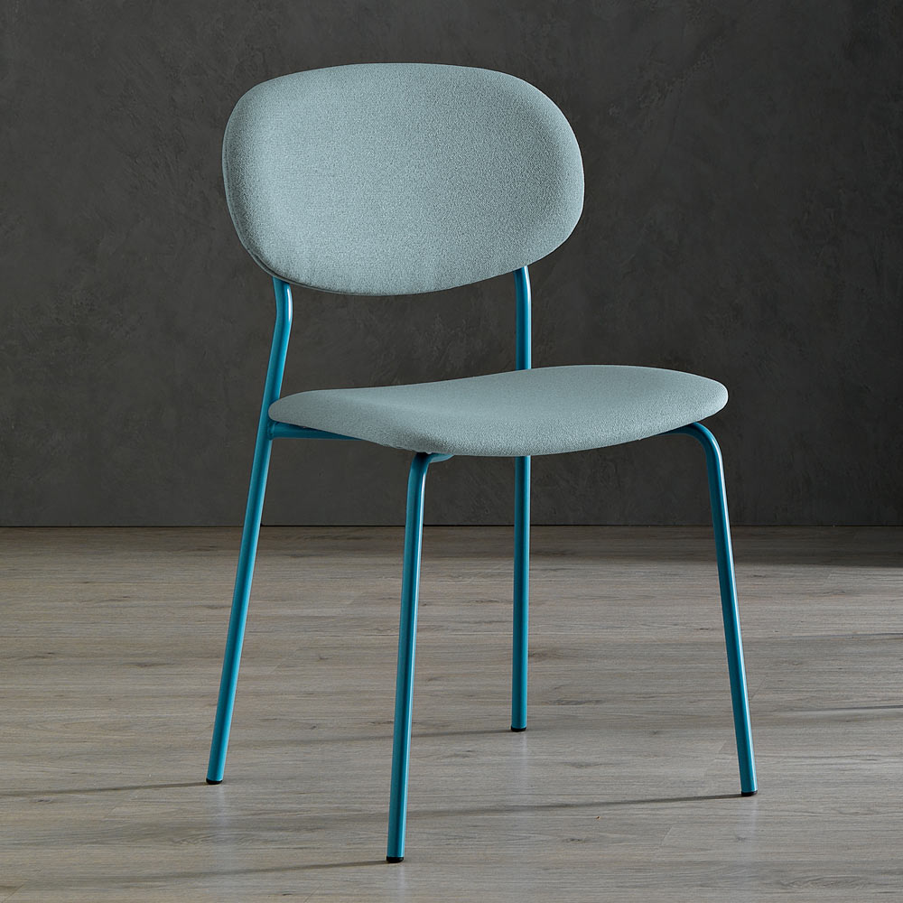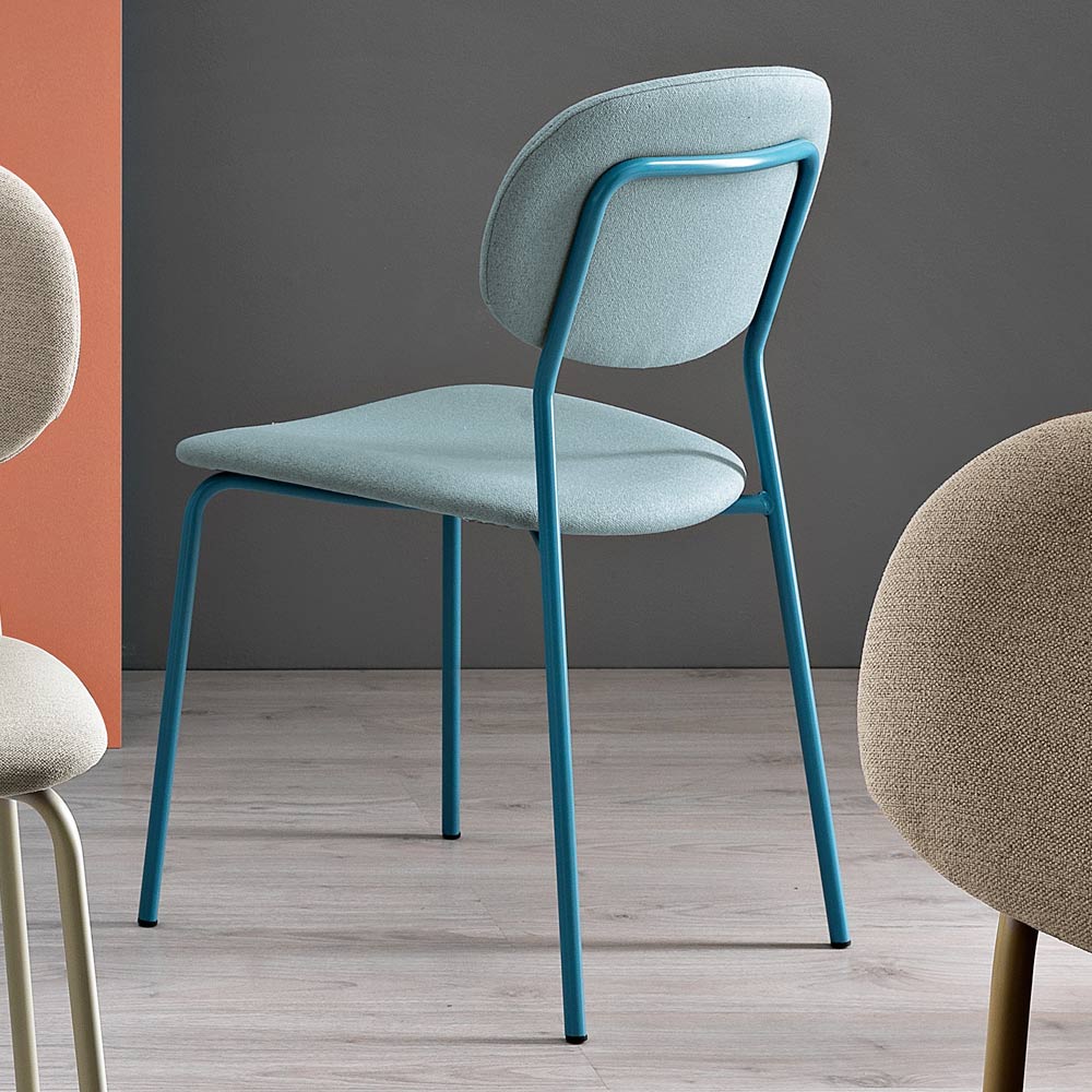 Med sin ergonomiska siluett är denna stol förkroppsligandet av komfort. De robusta men ändå eleganta metallbenen stöder sätets slingrande design och erbjuder stabilitet utan att kompromissa med estetiken. Kontrasten mellan sätenas djärva färger och de tunna strukturerna är ett medvetet val som förstärker designens mångsidighet , anpassningsbar till en myriad av interiörmiljöer.
