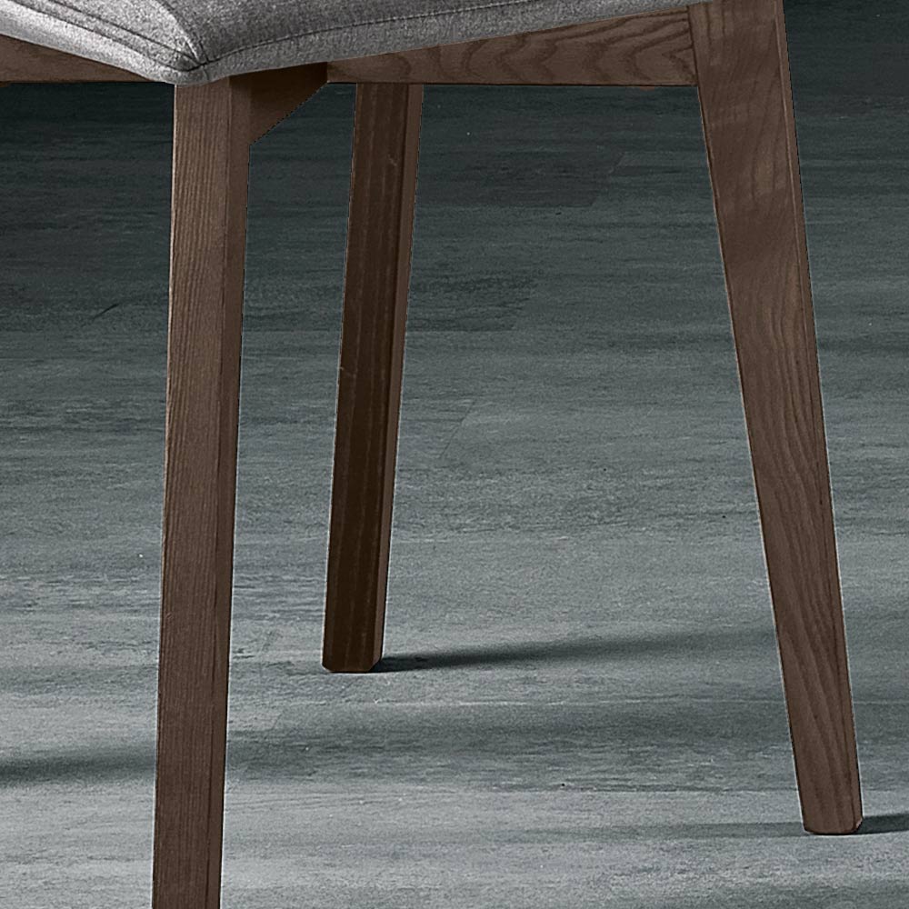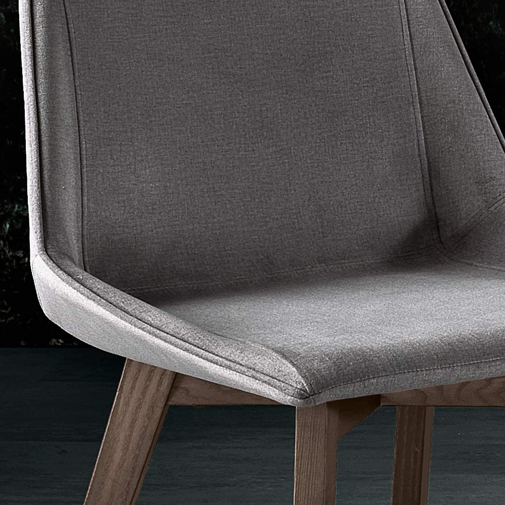 Benen i ask ger värme och stabilitet och påminner om naturens skönhet och robusthet. Den sneda bendesignen erbjuder inte bara ett modernt utseende utan säkerställer också en solid och långvarig struktur . Tygets grå färg och benens kokta aska förenas i en stil som kan komplettera alla typer av bord och inredning.
