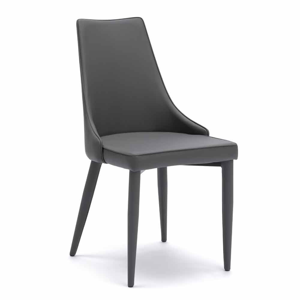 Stol med metallram helt täckt i mörkgrått konstläder.