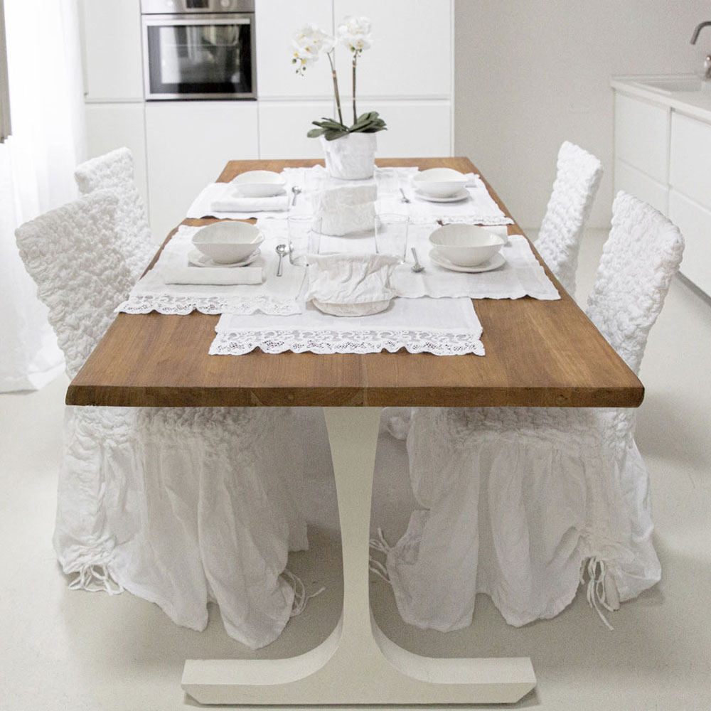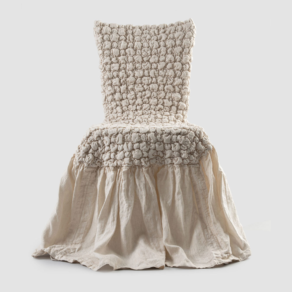 lätta, präglade linnestolöverdrag med fläns i olika ytor