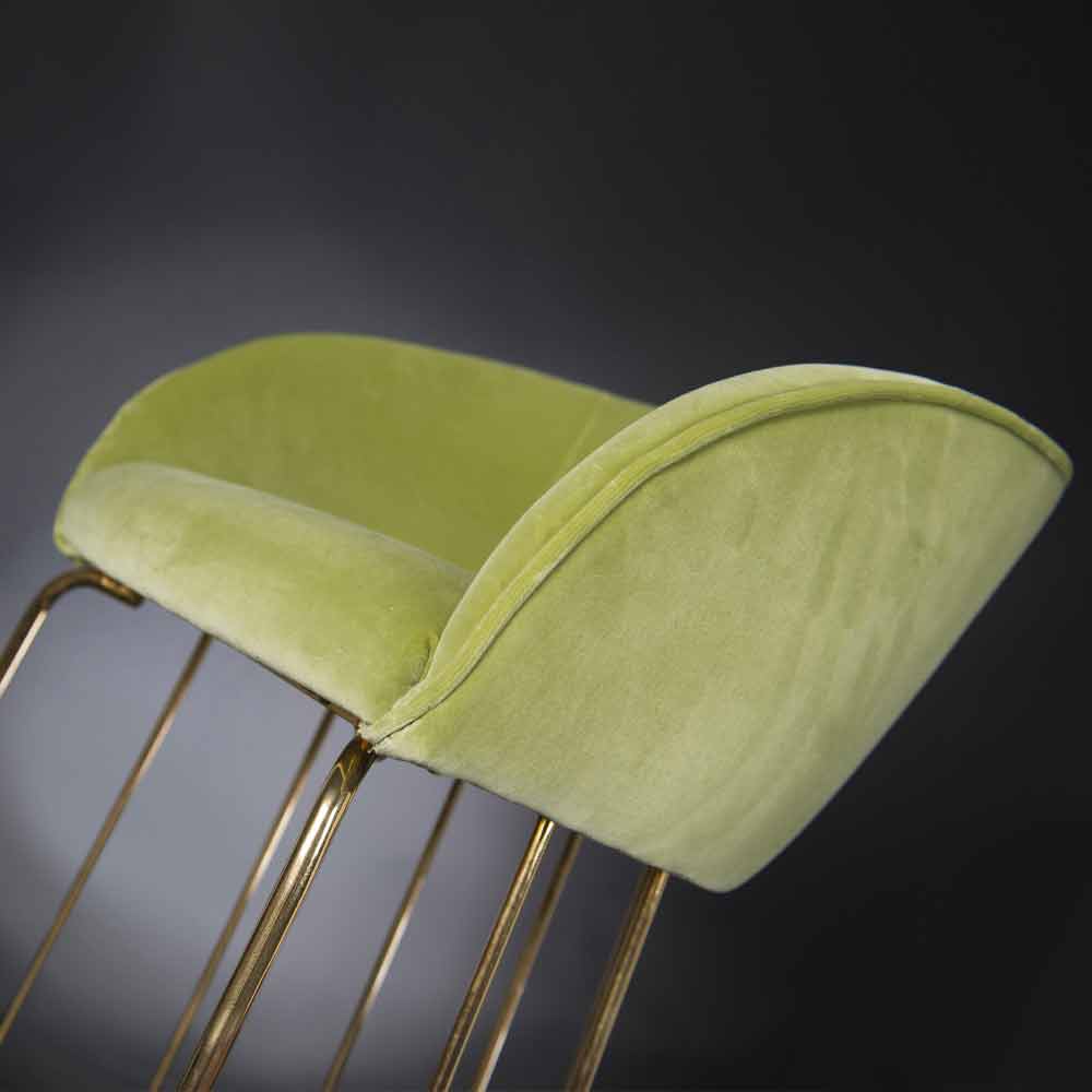 Hög pall perfekt för bar- eller köksbänkar tillverkade helt i Italien med 24k guldfinish metallstruktur, stoppad sits och rygg klädd i grönt sammet. En idé om eleganta möbler som kännetecknas av användningen av enkla linjer och former som kan ge liv åt ett komplement med en stilren och särskilt modern estetik som lyckas revolutionera alla vardagsrum eller kontraktsutrymmen tack vare en modern och original touch . Det som utmärker designen är en raffinerad stil tillsammans med en stark funktionell sida som erhålls genom en 100% Made in Italy -bearbetning och användning av kvalitetsråvaror som säkerställer en produkt av hög kvalitet och värde . Dess exklusiva estetik anpassar sig till alla stilistiska situationer och skapar en perfekt harmoni med elementen som omger den för ett kreativt och avantgarde-resultat.